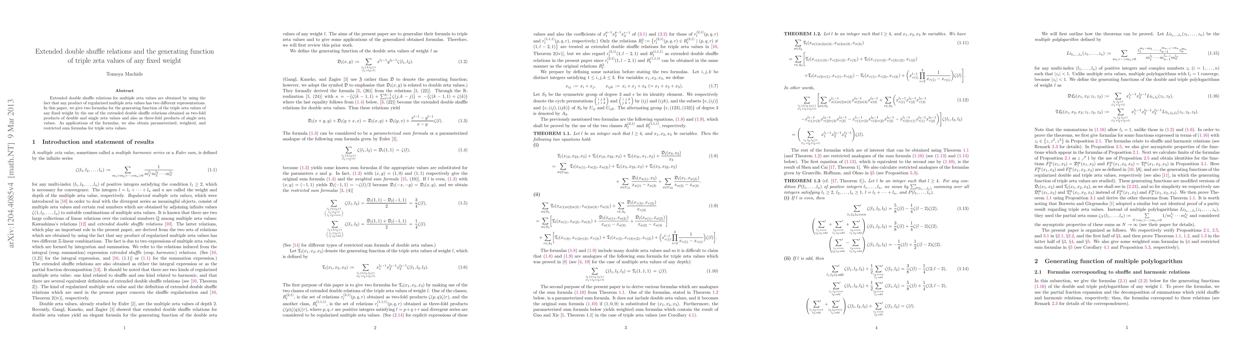 This paper develops extended double shuffle relations for multiple zeta values, specifically focusing on triple zeta values of any fixed weight. It provides generating function formulas derived from both two-fold and three-fold products of zeta values, and applies these to obtain various sum formulas for triple zeta values.