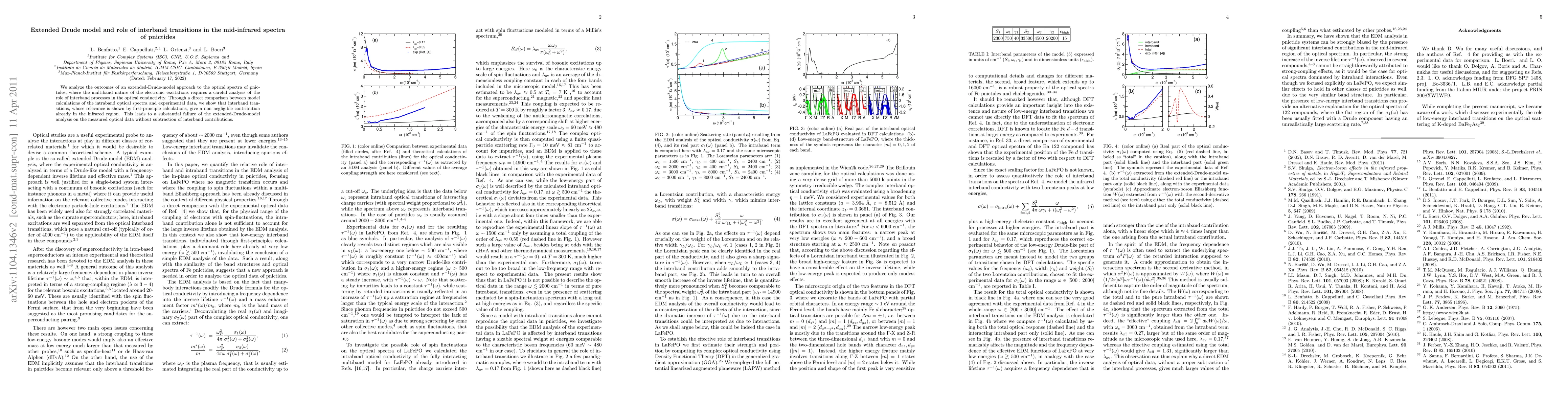 This paper investigates the optical spectra of pnictides using an extended-Drude-model, highlighting the significant contribution of interband transitions in the mid-infrared region. It concludes that interband processes cannot be neglected, leading to discrepancies in the model's predictions without accounting for these transitions.