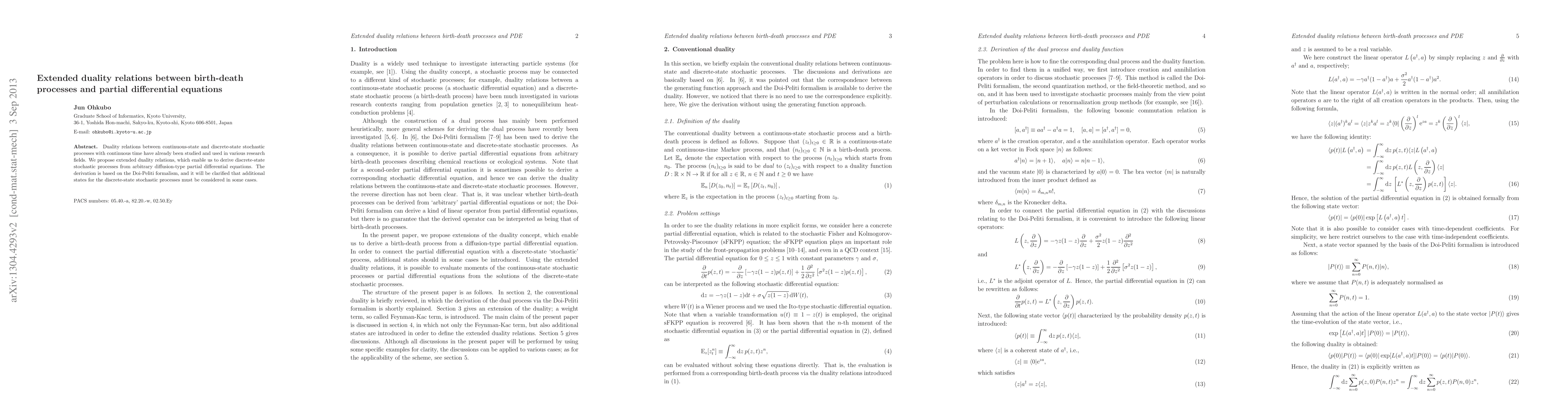 This paper proposes extended duality relations between birth-death processes and diffusion-type partial differential equations, enabling the derivation of discrete-state stochastic processes from PDEs using the Doi-Peliti formalism and algebraic probability theory, with additional states sometimes required.