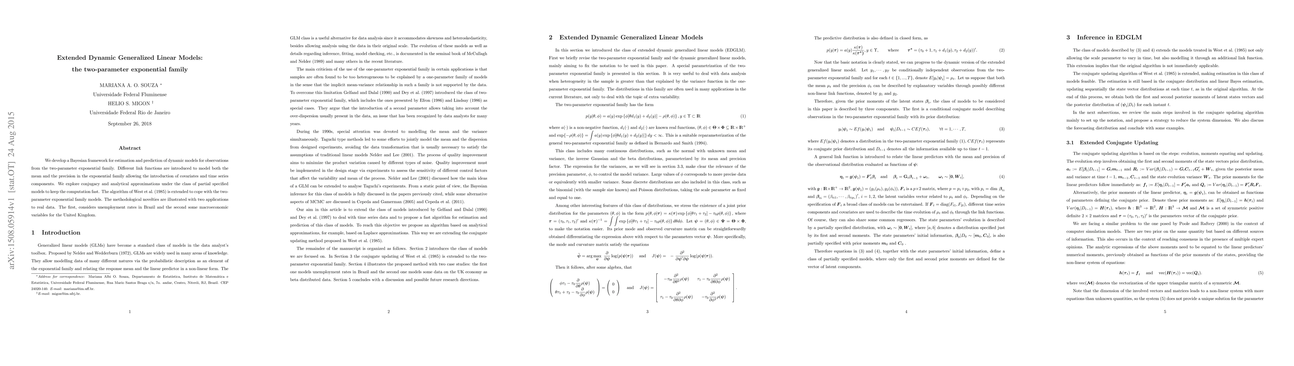 This paper develops a Bayesian framework for dynamic models based on the two-parameter exponential family, introducing different link functions to model mean and precision. It extends the West, Harrison, and Migon algorithm for computational efficiency and demonstrates the approach with real-world applications to Brazilian unemployment rates and UK macroeconomic variables.