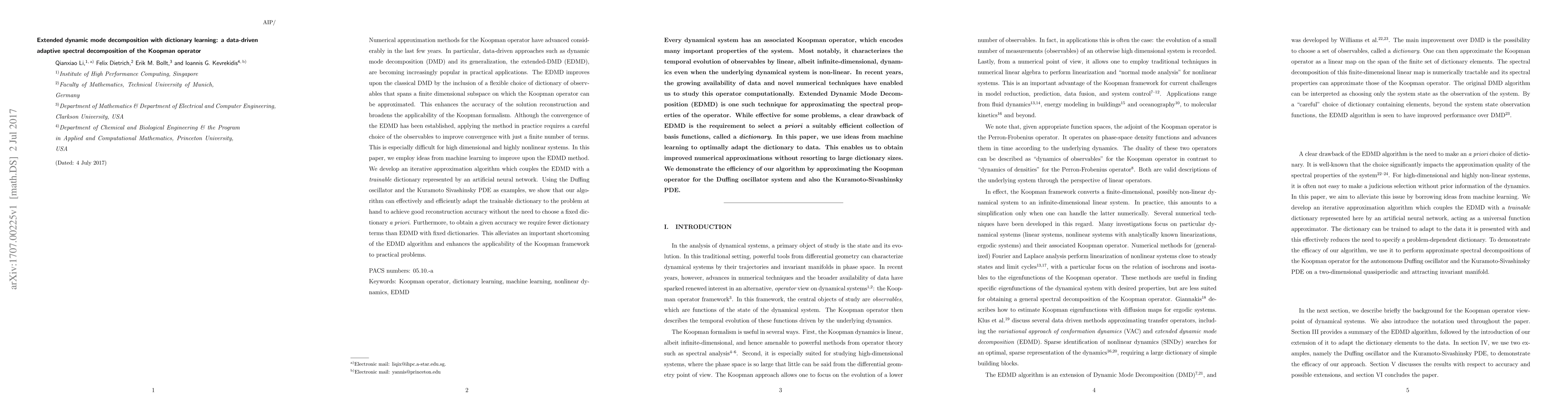 This paper proposes an enhanced version of extended dynamic mode decomposition (EDMD) by integrating dictionary learning through an artificial neural network, allowing for adaptive spectral decomposition of the Koopman operator. The method demonstrates improved accuracy and efficiency in reconstructing high-dimensional and nonlinear systems, requiring fewer terms compared to traditional EDMD.
