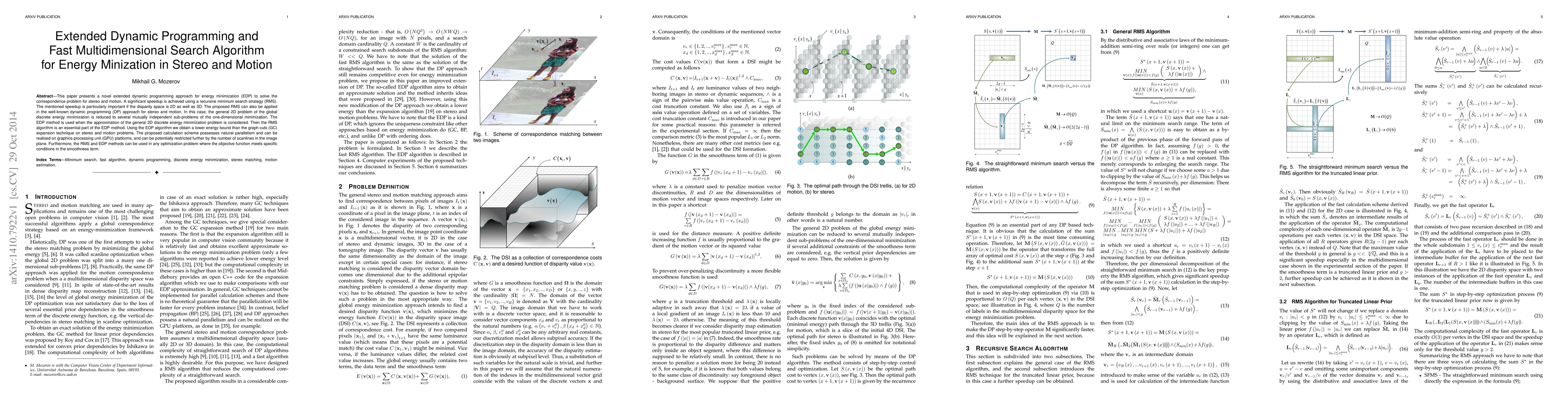 A new algorithm for energy minimization in stereo and motion problems achieves significant speedup using recursive minimum search strategy and can be applied to various optimization problems with specific conditions.