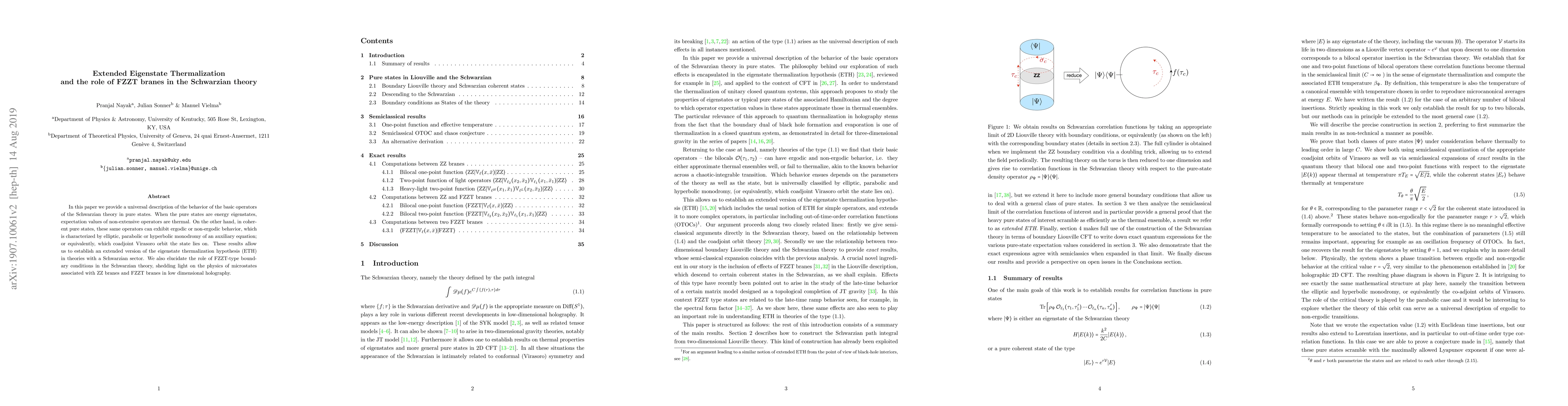In this paper we provide a universal description of the behavior of the basic operators of the Schwarzian theory in pure states. When the pure states are energy eigenstates, expectation values of non-extensive operators are thermal. On the other hand, in coherent pure states, these same operators can exhibit ergodic or non-ergodic behavior, which is characterized by elliptic, parabolic or hyperbolic monodromy of an auxiliary equation; or equivalently, which coadjoint Virasoro orbit the state lies on. These results allow us to establish an extended version of the eigenstate thermalization hypothesis (ETH) in theories with a Schwarzian sector. We also elucidate the role of FZZT-type boundary conditions in the Schwarzian theory, shedding light on the physics of microstates associated with ZZ branes and FZZT branes in low dimensional holography.
