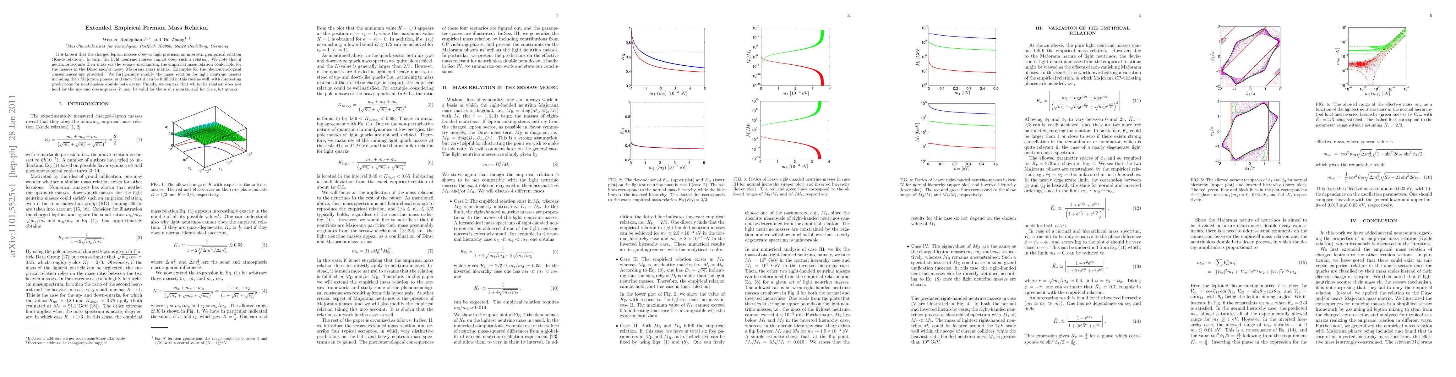 It is known that the charged lepton masses obey to high precision an interesting empirical relation (Koide relation). In turn, the light neutrino masses cannot obey such a relation. We note that if neutrinos acquire their mass via the seesaw mechanism, the empirical mass relation could hold for the masses in the Dirac and/or heavy Majorana mass matrix. Examples for the phenomenological consequences are provided. We furthermore modify the mass relation for light neutrino masses including their Majorana phases, and show that it can be fulfilled in this case as well, with interesting predictions for neutrinoless double beta decay. Finally, we remark that while the relation does not hold for the up- and down-quarks, it may be valid for the u, d, s quarks, and for the c, b, t quarks.