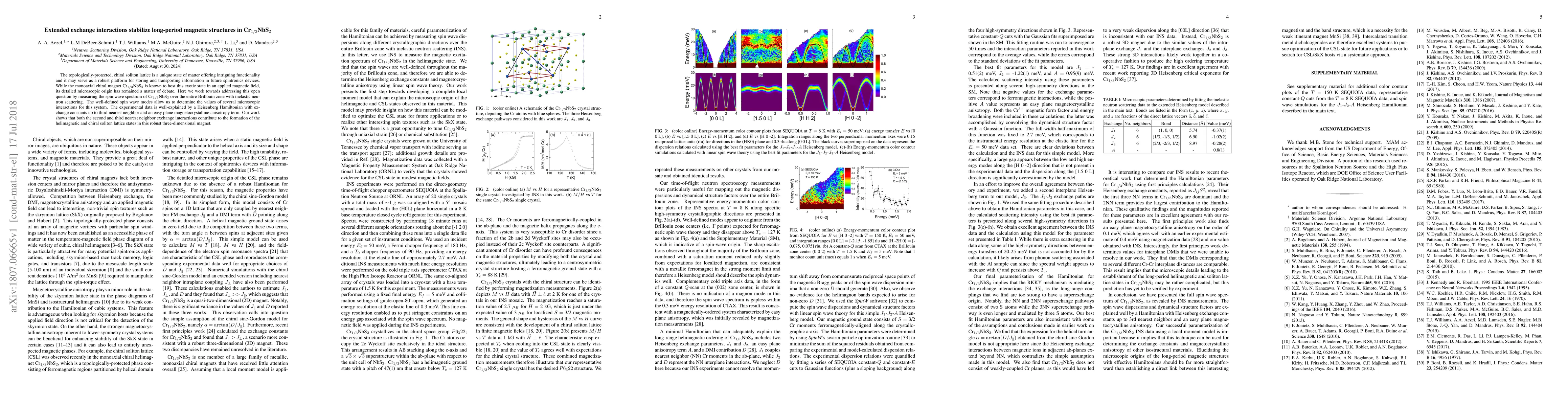 The research reveals that extended exchange interactions up to third nearest neighbors stabilize the chiral soliton lattice in Cr$_{1/3}$NbS$_2$, contributing to its robust magnetic structure. Inelastic neutron scattering data supports a Heisenberg Hamiltonian model, highlighting the importance of these interactions for the material's helimagnetic and chiral soliton lattice states.