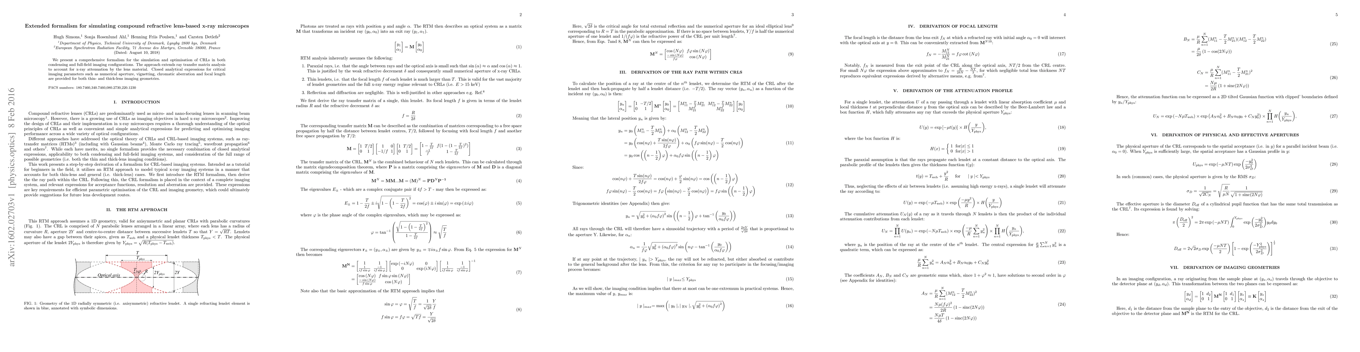 We present a comprehensive formalism for the simulation and optimisation of CRLs in both condensing and full-field imaging configurations. The approach extends ray transfer matrix analysis to account for x-ray attenuation by the lens material. Closed analytical expressions for critical imaging parameters such as numerical aperture, vignetting, chromatic aberration and focal length are provided for both thin- and thick-lens imaging geometries.