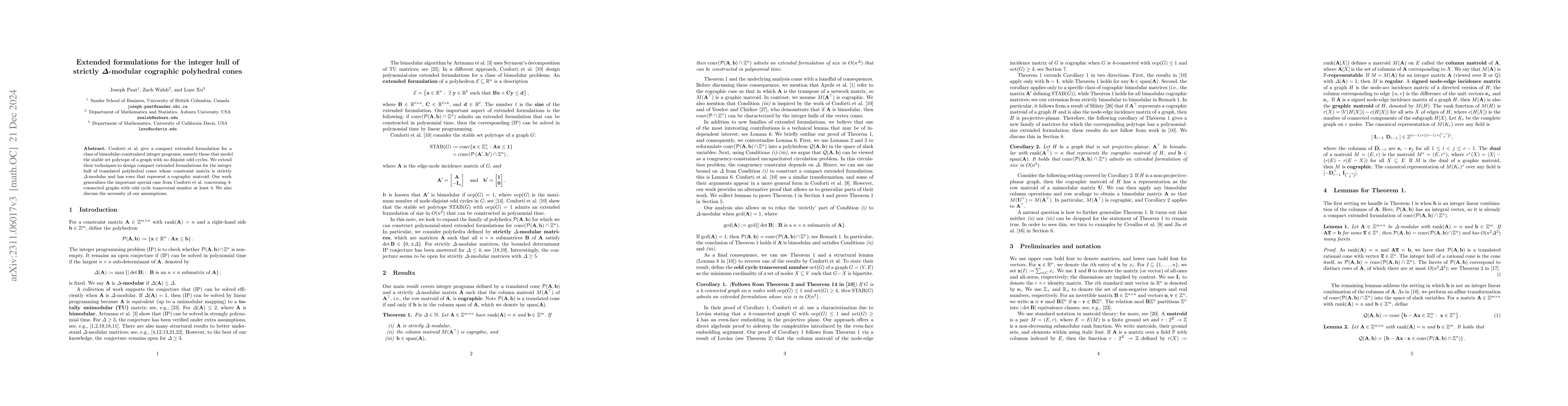 This paper extends Conforti et al.'s compact extended formulation for bimodular-constrained integer linear programs to a broader class of polyhedra where the constraint matrix is bimodular, cographic, and the right-hand side is a linear combination of the matrix's columns. This generalizes the special case of 4-connected graphs with odd cycle transversal number at least four.