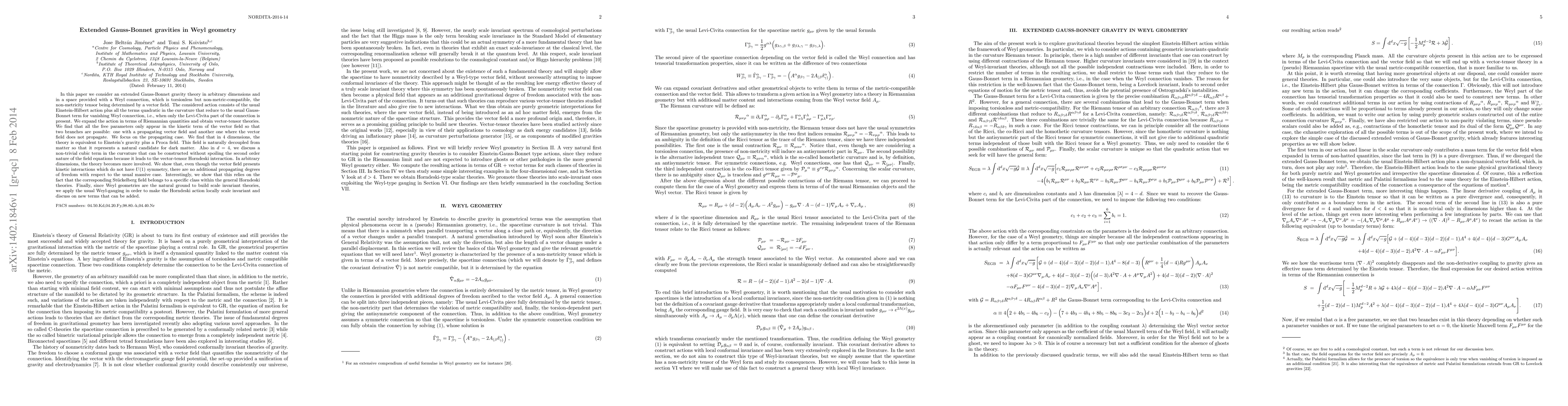 In this paper we consider an extended Gauss-Bonnet gravity theory in arbitrary dimensions and in a space provided with a Weyl connection, which is torsionless but not metric-compatible, the non-metricity tensor being determined by a vector field. The considered action consists of the usual Einstein-Hilbert action plus all the terms quadratic in the curvature that reduce to the usual Gauss-Bonnet term for vanishing Weyl connection, i.e., when only the Levi-Civita part of the connection is present. We expand the action in terms of Riemannian quantities and obtain vector-tensor theories. We find that all the free parameters only appear in the kinetic term of the vector field so that two branches are possible: one with a propagating vector field and another one where the vector field does not propagate. We focus on the propagating case. We find that in 4 dimensions, the theory is equivalent to Einstein's gravity plus a Proca field. This field is naturally decoupled from matter so that it represents a natural candidate for dark matter. Also in d=4, we discuss a non-trivial cubic term in the curvature that can be constructed without spoiling the second order nature of the field equations because it leads to the vector-tensor Horndeski interaction. In arbitrary dimensions, the theory becomes more involved. We show that, even though the vector field presents kinetic interactions which do not have U(1) symmetry, there are no additional propagating degrees of freedom with respect to the usual massive case. Interestingly, we show that this relies on the fact that the corresponding Stueckelberg field belongs to a specific class within the general Horndeski theories. Finally, since Weyl geometries are the natural ground to build scale invariant theories, we apply the usual Weyl-gauging in order to make the Horndeski action locally scale invariant and discuss on new terms that can be added.