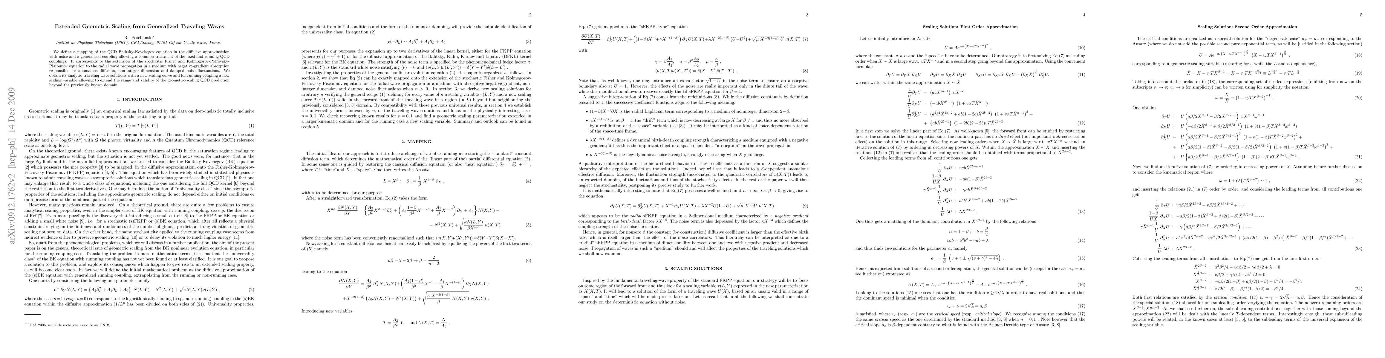 We define a mapping of the QCD Balitsky-Kovchegov equation in the diffusive approximation with noise and a generalized coupling allowing a common treatment of the fixed and running QCD couplings. It corresponds to the extension of the stochastic Fisher and Kolmogorov-Petrovsky-Piscounov equation to the radial wave propagation in a medium with negative-gradient absorption responsible for anomalous diffusion,non-integer dimension and damped noise fluctuations. We obtain its analytic traveling wave solutions with a new scaling curve and in particular for running coupling a new scaling variable allowing to extend the range and validity of the geometric-scaling QCD prediction beyond the previously known domain.