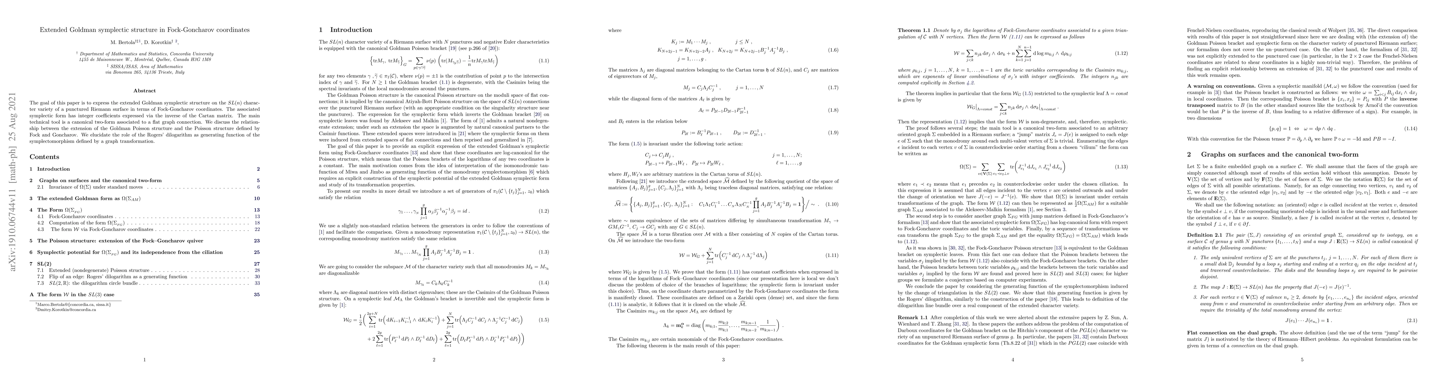 This paper expresses the extended Goldman symplectic structure on the $SL(n)$ character variety using Fock-Goncharov coordinates, revealing integer coefficients via the inverse of the Cartan matrix. The study leverages a canonical two-form from flat graph connections and explores the relationship between the Goldman and Fock-Goncharov Poisson structures, highlighting the Rogers' dilogarithm's role in generating symplectomorphisms.