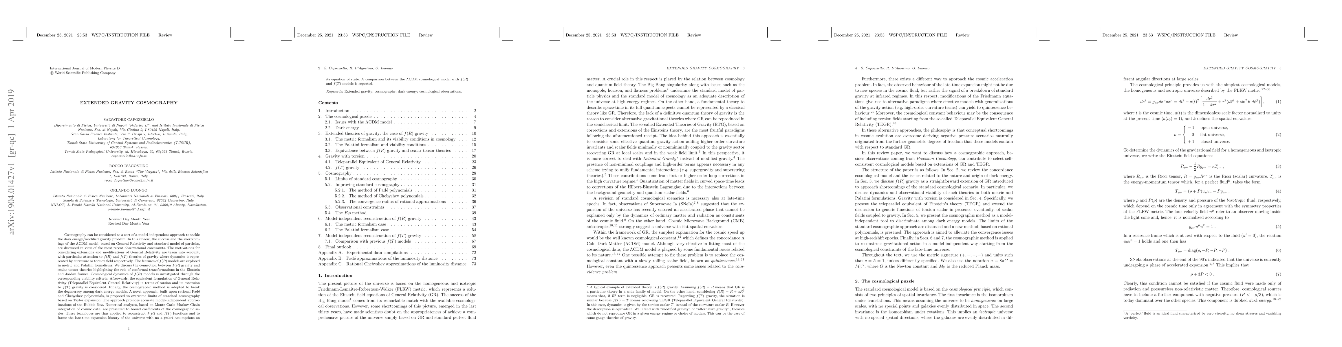 This review paper discusses alternative approaches to understanding dark energy and modified gravity, focusing on Extended Gravity Cosmography methods that use $f(R)$ and $f(T)$ theories of gravity to reconstruct the universe's expansion history without making assumptions about its equation of state.