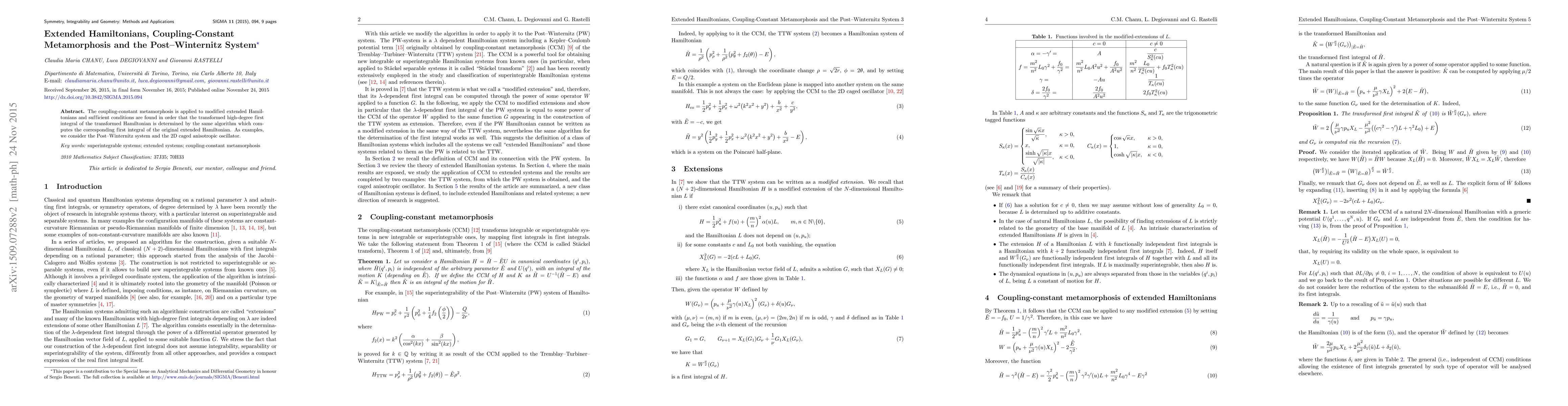 The coupling-constant metamorphosis is applied to modified extended Hamiltonians and sufficient conditions are found in order that the transformed high-degree first integral of the transformed Hamiltonian is determined by the same algorithm which computes the corresponding first integral of the original extended Hamiltonian. As examples, we consider the Post-Winternitz system and the 2D caged anisotropic oscillator.