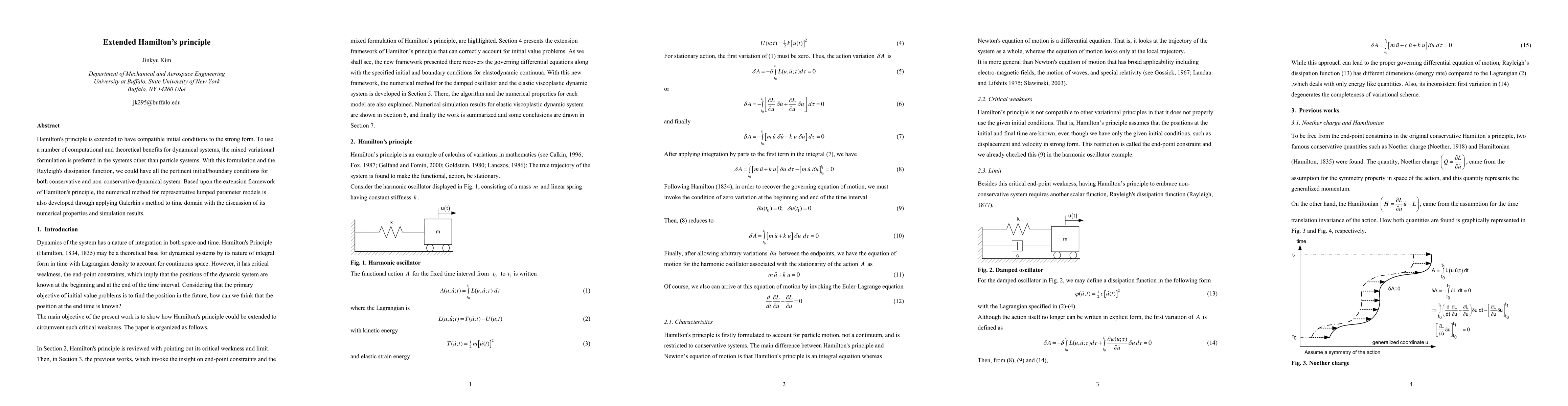 Hamilton's principle is extended to have compatible initial conditions to the strong form. To use a number of computational and theoretical benefits for dynamical systems, the mixed variational formulation is preferred in the systems other than particle systems. With this formulation and the Rayleigh's dissipation function, we could have all the pertinent initial/boundary conditions for both conservative and non-conservative dynamical system. Based upon the extension framework of Hamilton's principle, the numerical method for representative lumped parameter models is also developed through applying Galerkin's method to time domain with the discussion of its numerical properties and simulation results.