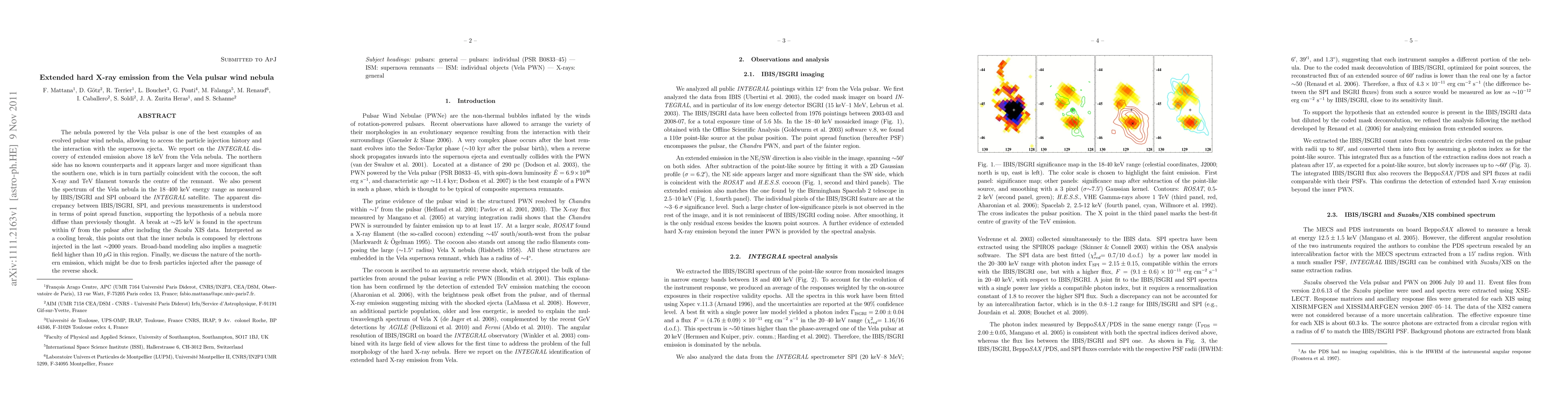 The INTEGRAL satellite discovered extended hard X-ray emission above 18 keV from the Vela pulsar wind nebula, with the northern side showing unique characteristics. The spectrum indicates a cooling break at ~25 keV, suggesting electrons injected in the last ~2000 years and a magnetic field higher than 10 microGauss.