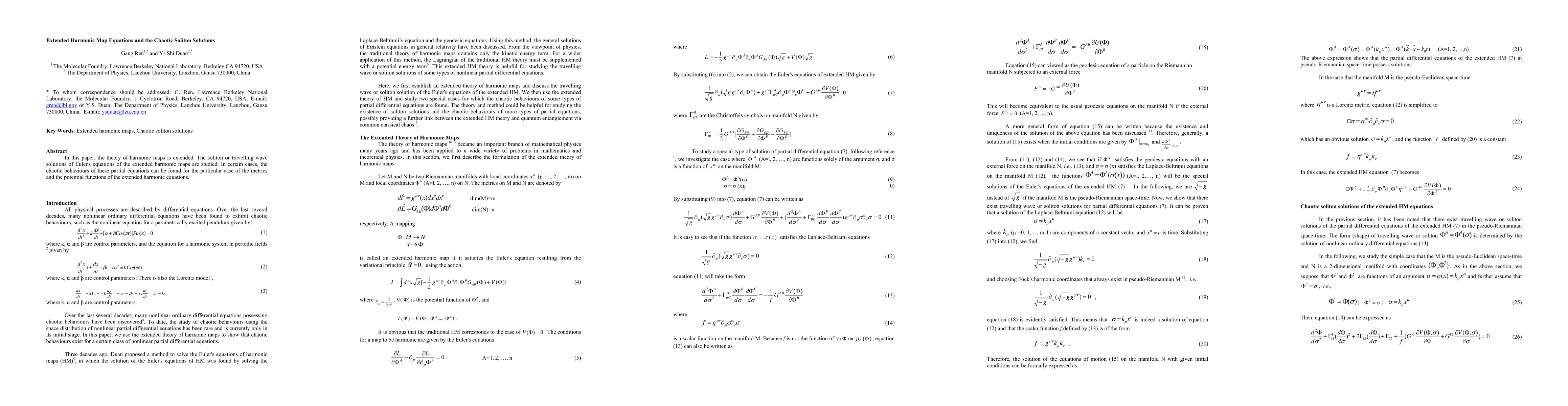 In this paper, the theory of harmonic maps is extended. The soliton or traveling wave solutions of Euler's equations of the extended harmonic maps are studied. In certain cases, the chaotic behaviors of these partial equations can be found for the particular case of the metrics and the potential functions of the extended harmonic equations.