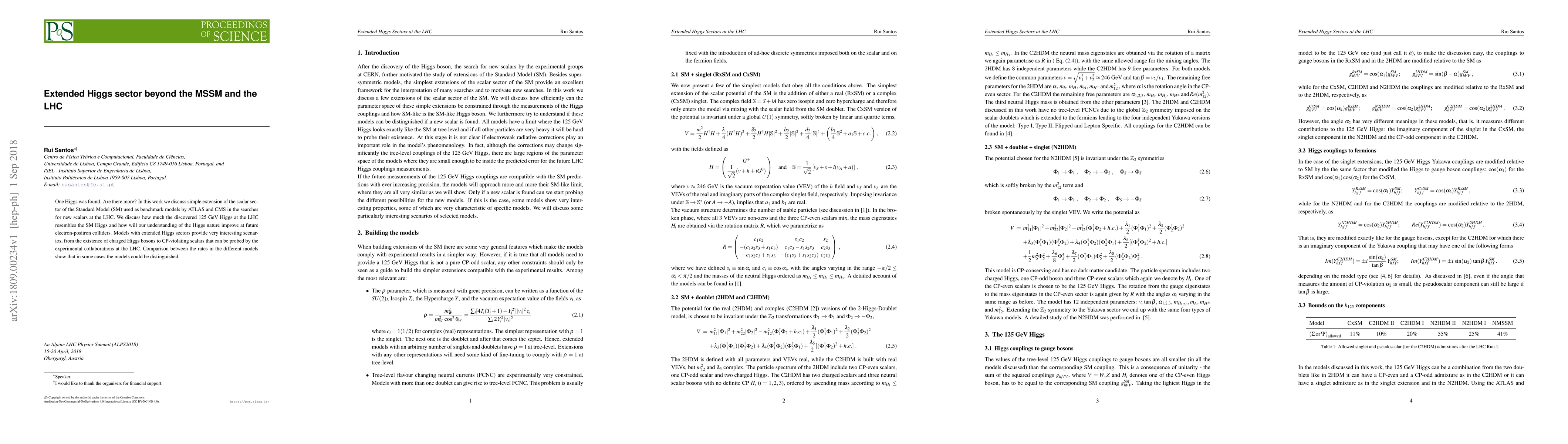 A simple extension of the scalar sector of the SM was presented and discussed.