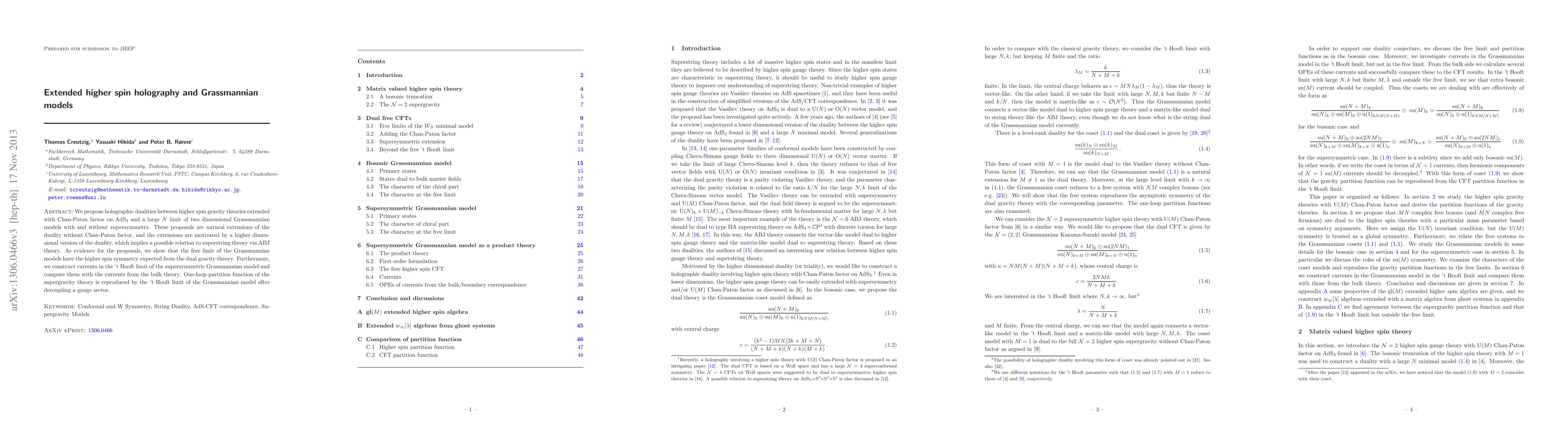 This paper proposes holographic dualities between higher spin gravity theories in AdS_3 and large N limit Grassmannian models, extending previous dualities. Evidence includes the free limit of the models exhibiting expected higher spin symmetry and matching currents in the 't Hooft limit, with the supergravity partition function reproduced by the Grassmannian model.