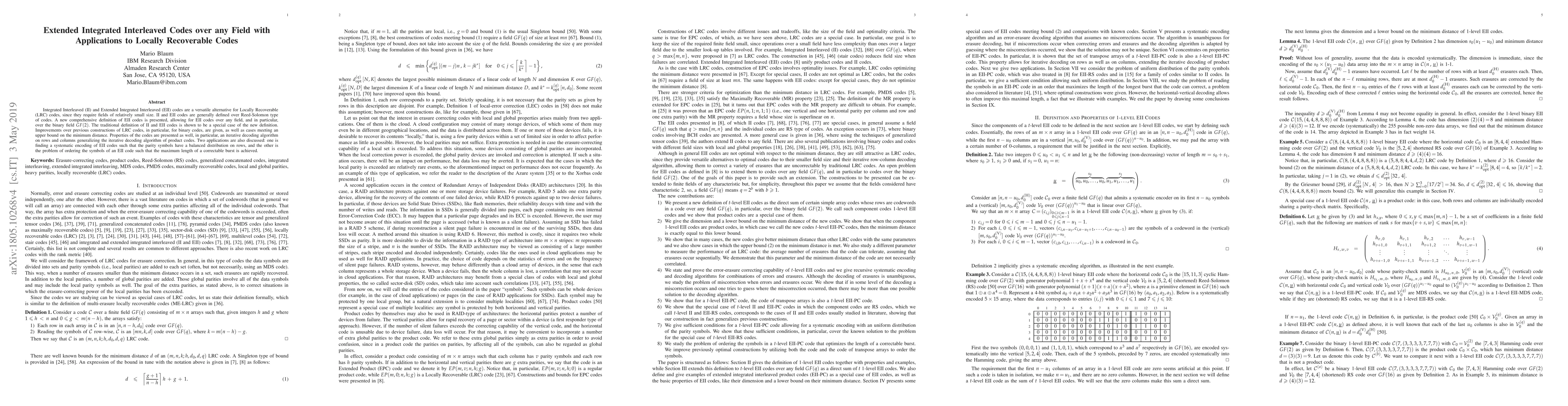 Integrated Interleaved (II) and Extended Integrated Interleaved (EII) codes are a versatile alternative for Locally Recoverable (LRC) codes, since they require fields of relatively small size. II and EII codes are generally defined over Reed-Solomon type of codes. A new comprehensive definition of EII codes is presented, allowing for EII codes over any field, and in particular, over the binary field $GF(2)$. The traditional definition of II and EII codes is shown to be a special case of the new definition. Improvements over previous constructions of LRC codes, in particular, for binary codes, are given, as well as cases meeting an upper bound on the minimum distance. Properties of the codes are presented as well, in particular, an iterative decoding algorithm on rows and columns generalizing the iterative decoding algorithm of product codes. Two applications are also discussed: one is finding a systematic encoding of EII codes such that the parity symbols have a balanced distribution on rows, and the other is the problem of ordering the symbols of an EII code such that the maximum length of a correctable burst is achieved.