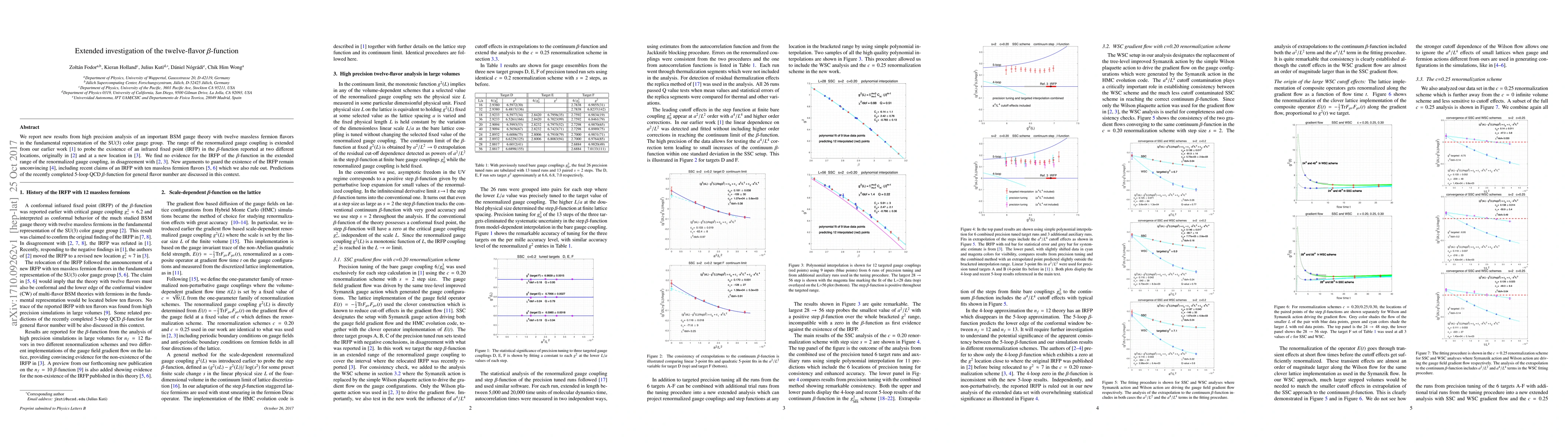 We report new results from high precision analysis of an important BSM gauge theory with twelve massless fermion flavors in the fundamental representation of the SU(3) color gauge group. The range of the renormalized gauge coupling is extended from our earlier work {Fodor:2016zil} to probe the existence of an infrared fixed point (IRFP) in the $\beta$-function reported at two different locations, originally in {Cheng:2014jba} and at a new location in {Hasenfratz:2016dou}. We find no evidence for the IRFP of the $\beta$-function in the extended range of the renormalized gauge coupling, in disagreement with {Cheng:2014jba,Hasenfratz:2016dou}. New arguments to guard the existence of the IRFP remain unconvincing {Hasenfratz:2017mdh}, including recent claims of an IRFP with ten massless fermion flavors {Chiu:2016uui,Chiu:2017kza} which we also rule out. Predictions of the recently completed 5-loop QCD $\beta$-function for general flavor number are discussed in this context.