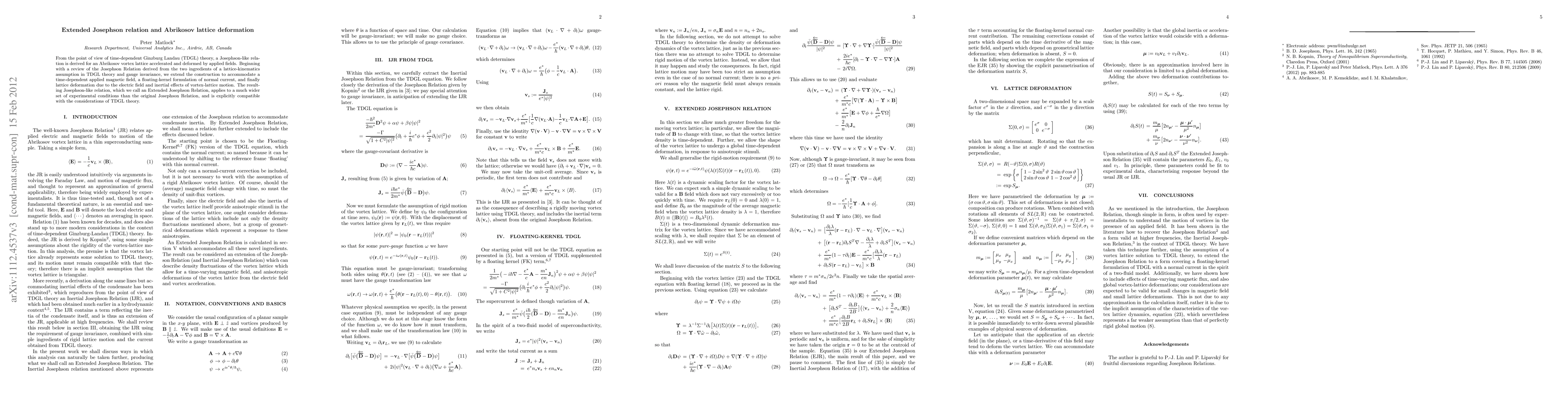 This paper derives an Extended Josephson Relation from time-dependent Ginzburg-Landau (TDGL) theory for an accelerated and deformed Abrikosov vortex lattice under applied fields. It extends the original Josephson Relation to include effects of magnetic field, normal current, and lattice deformation due to electric fields and inertial motion.