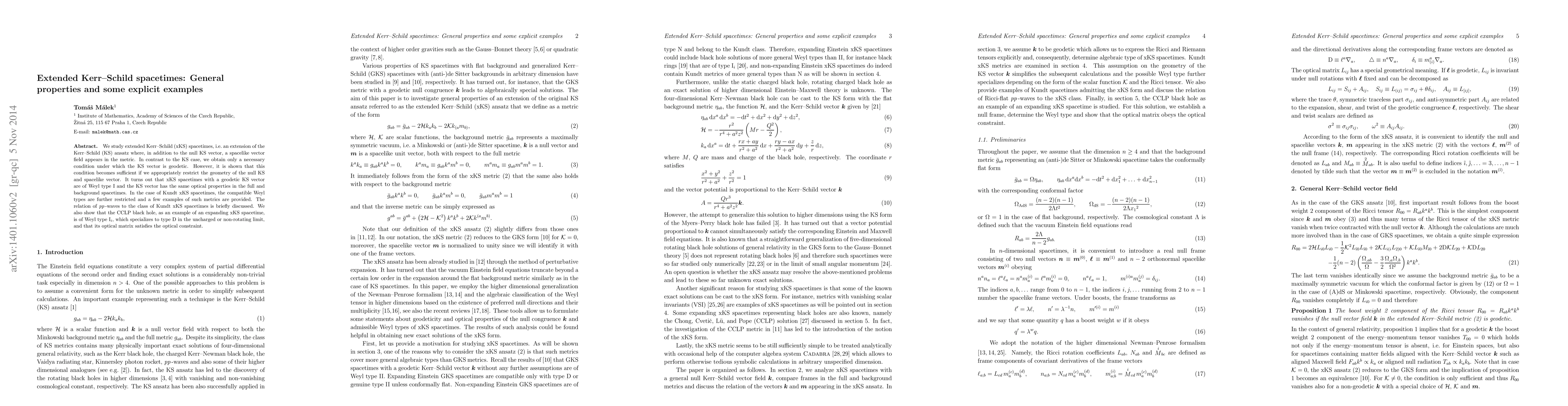 This paper studies extended Kerr-Schild spacetimes with a geodetic null vector field, finding that they are of Weyl type I and have specific optical properties.