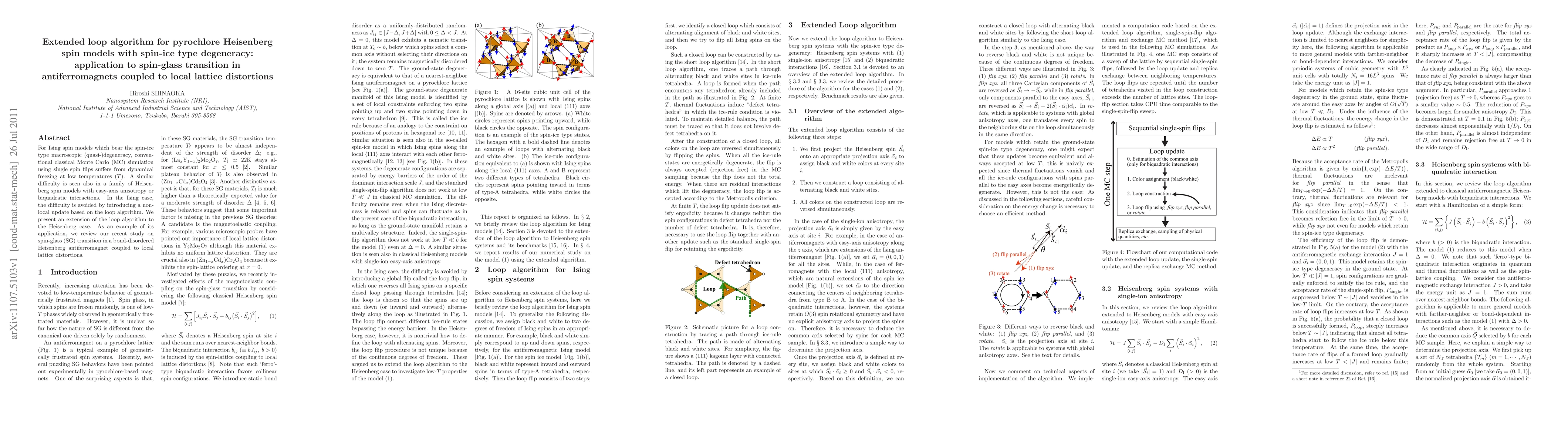 This paper introduces an extended loop algorithm for Heisenberg spin models exhibiting spin-ice type degeneracy, addressing the dynamical freezing issue in Monte Carlo simulations. The method is applied to study the spin-glass transition in bond-disordered Heisenberg antiferromagnets with local lattice distortions.
