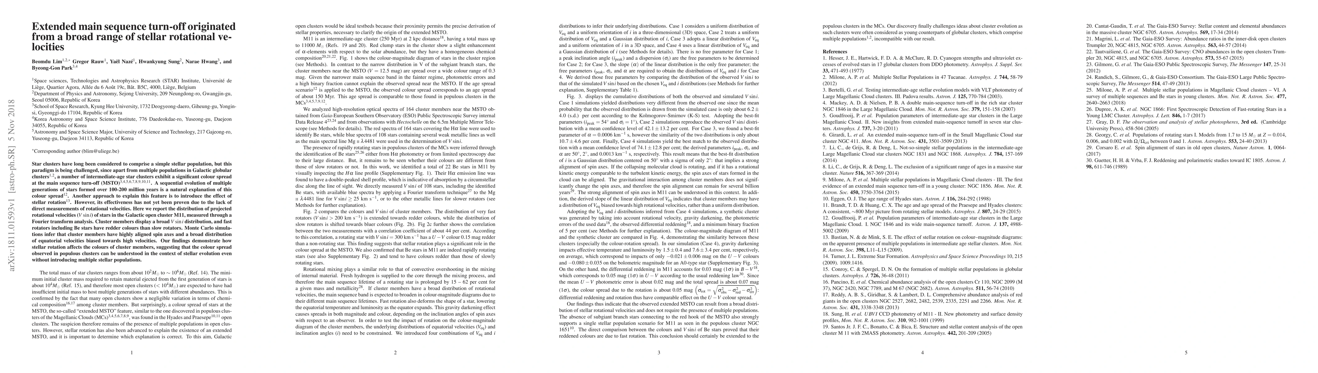 This paper investigates the colour spread at the main sequence turn-off in star clusters, attributing it to a broad range of stellar rotational velocities rather than multiple stellar generations. Measurements of rotational velocities in the cluster M11 reveal a wide distribution, with fast rotators exhibiting redder colours, suggesting that stellar rotation can explain the observed colour spread.