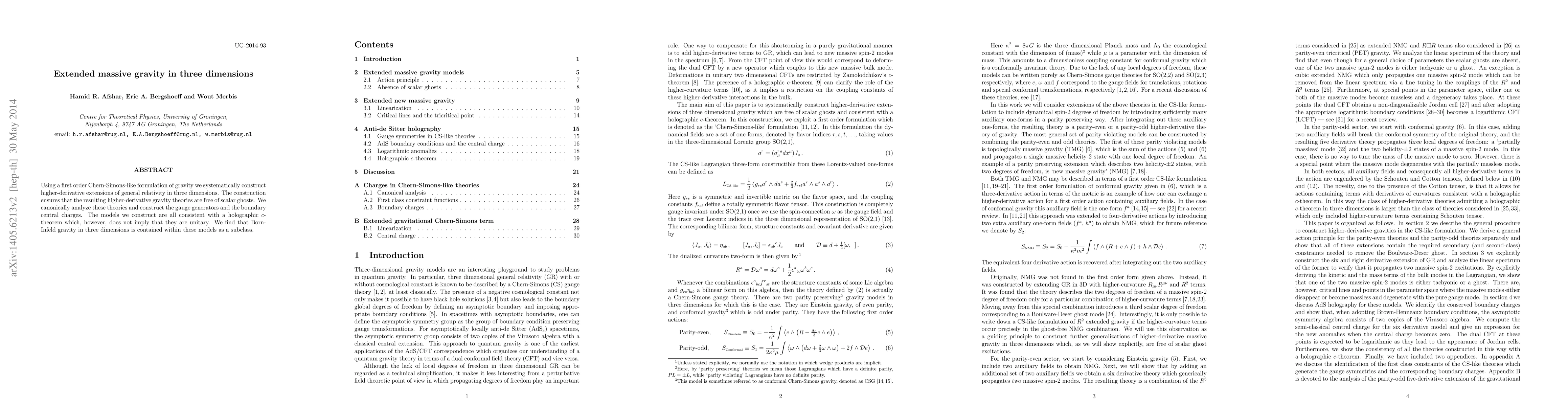 This paper constructs higher-derivative extensions of three-dimensional gravity using a first-order formulation, ensuring the absence of scalar ghosts. It finds that these models are consistent with a holographic c-theorem but not necessarily unitary, and includes Born-Infeld gravity as a subclass.