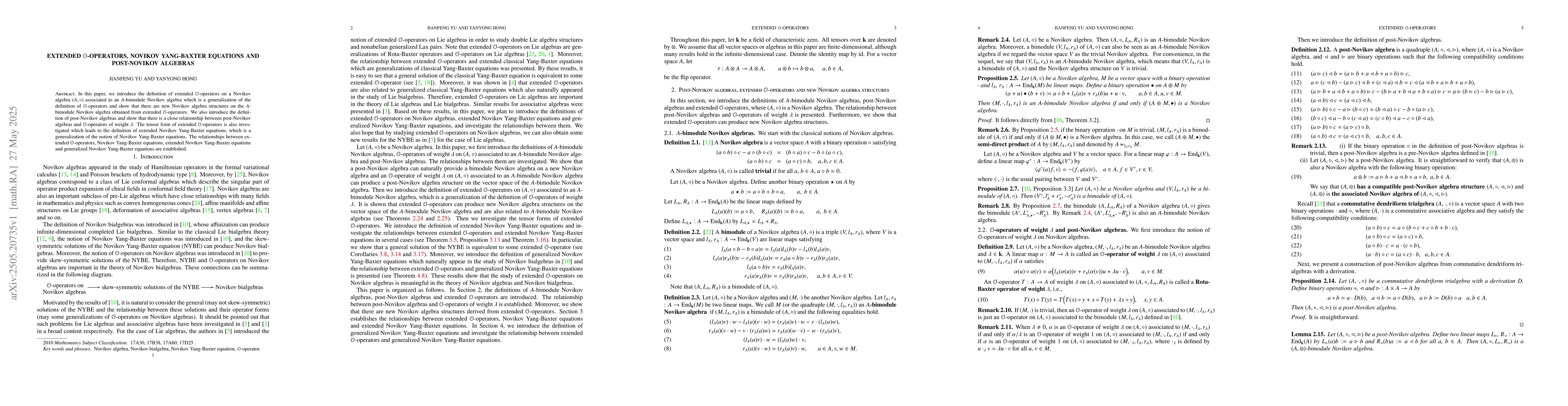 The introduction of extended $\mathcal{O}$-operators and their connection to Novikov Yang-Baxter equations, along with the definition of post-Novikov algebras and extended Novikov Yang-Baxter equations, constitutes the main technical contribution.