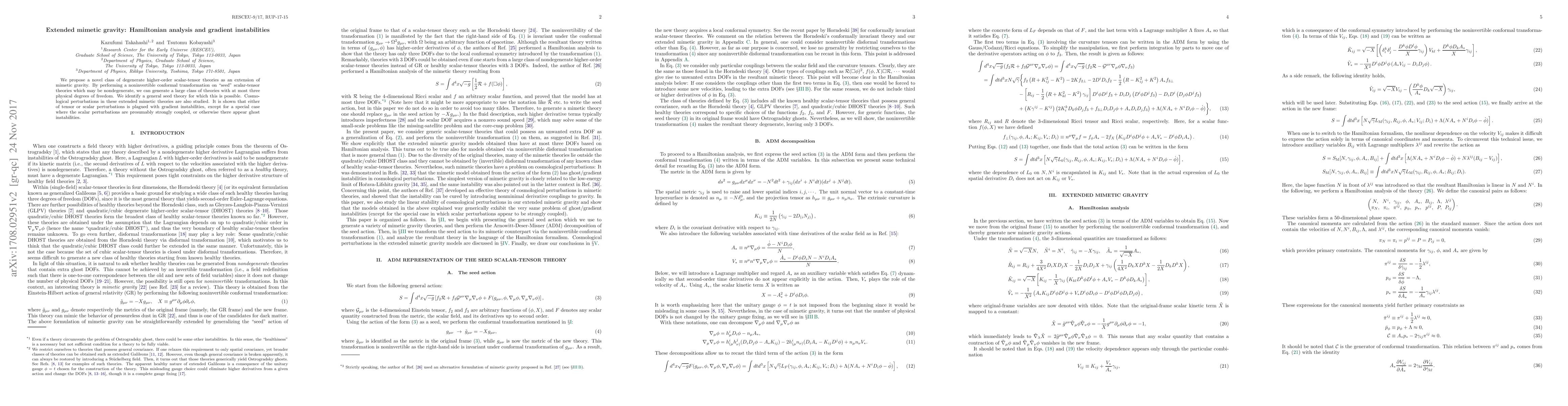 This paper introduces a new class of extended mimetic gravity theories derived from noninvertible conformal transformations of scalar-tensor theories, maintaining at most three physical degrees of freedom. It examines cosmological perturbations and finds gradient instabilities in tensor or scalar perturbations, with exceptions for a special case where scalar perturbations may be strongly coupled or exhibit ghost instabilities.