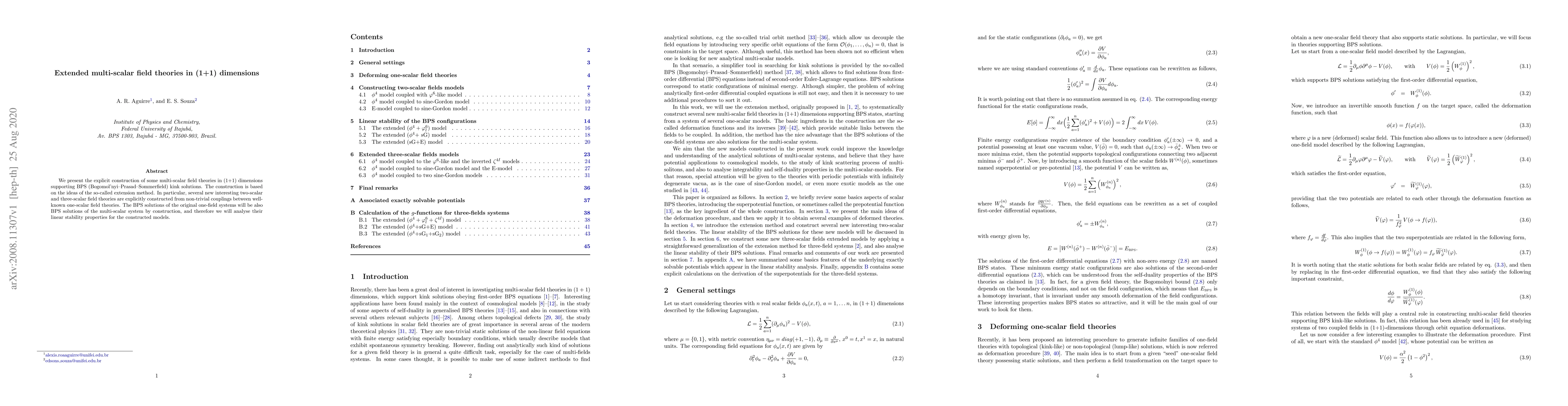 This paper constructs multi-scalar field theories in (1+1) dimensions using the extension method, yielding new two- and three-scalar systems from one-scalar models. The resulting theories support BPS kink solutions, and the stability of these solutions is analyzed.