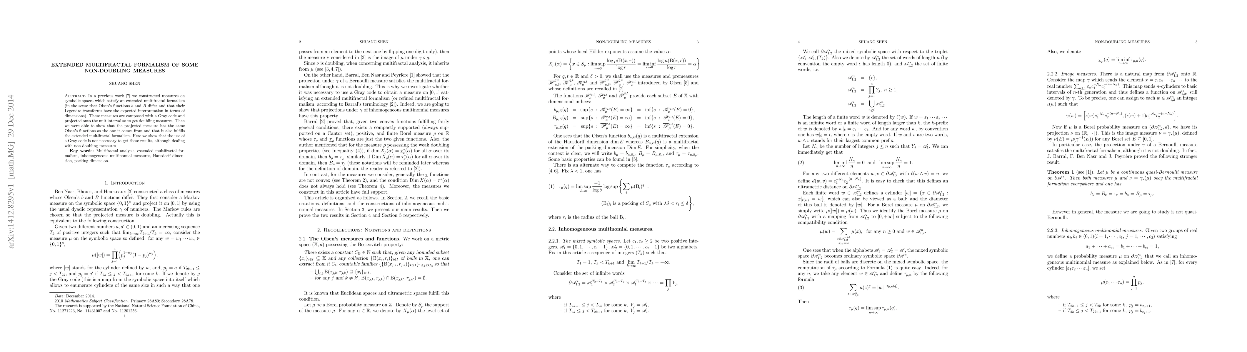 In a previous work \cite{She} we constructed measures on symbolic spaces which satisfy an extended multifractal formalism (in the sense that Olsen's functions $b$ and $B$ differ and that their Legendre transforms have the expected interpretation in terms of dimensions). These measures are composed with a Gray code and projected onto the unit interval so to get doubling measures. Then we were able to show that the projected measure has the same Olsen's functions as the one it comes from and that it also fulfills the extended multifractal formalism. Here we show that the use of a Gray code is not necessary to get these results, although dealing with non doubling measures.