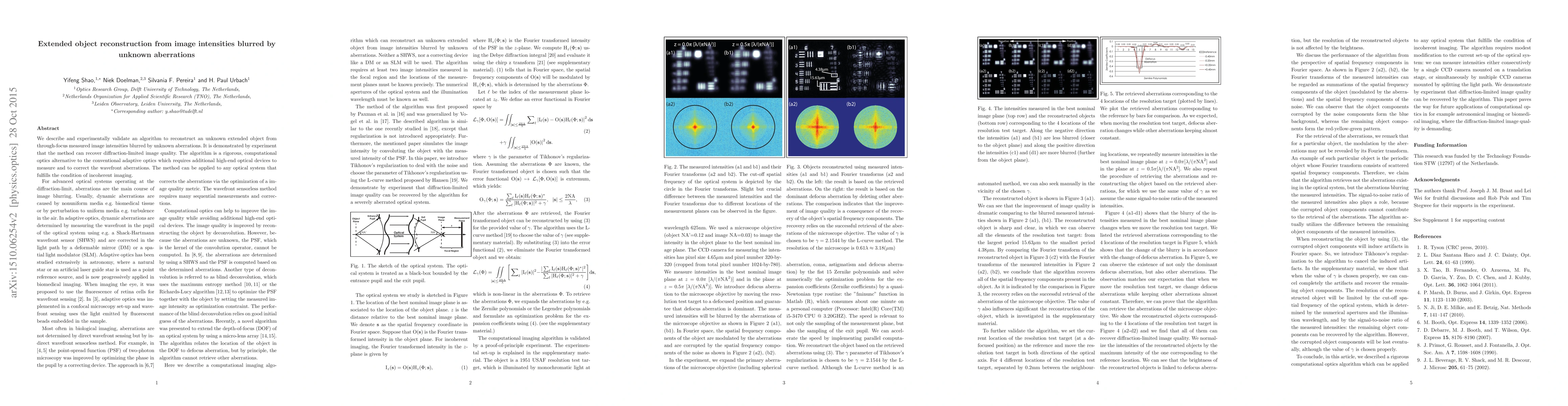 We describe and experimentally validate an algorithm to reconstruct an unknown extended object from through-focus measured image intensities blurred by unknown aberrations. It is shown that the method can recover diffraction-limited image quality. The algorithm is a rigorous, computational optics alternative to the conventional adaptive optics which requires additional high end optical devices to measure and to correct the wavefront aberrations. The method can be applied to any optical system that fulfills the condition of incoherent imaging.