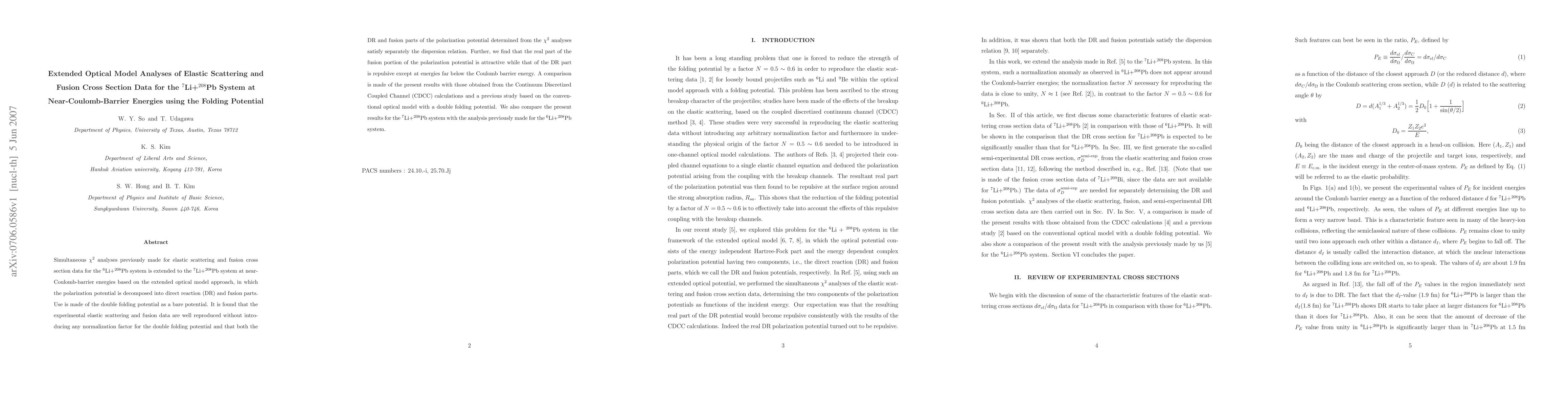 Researchers analyzed elastic scattering and fusion cross-section data for the 7Li+208Pb system using an optical model approach, finding that the experimental data match predictions without needing a normalization factor or introducing unphysical potentials.