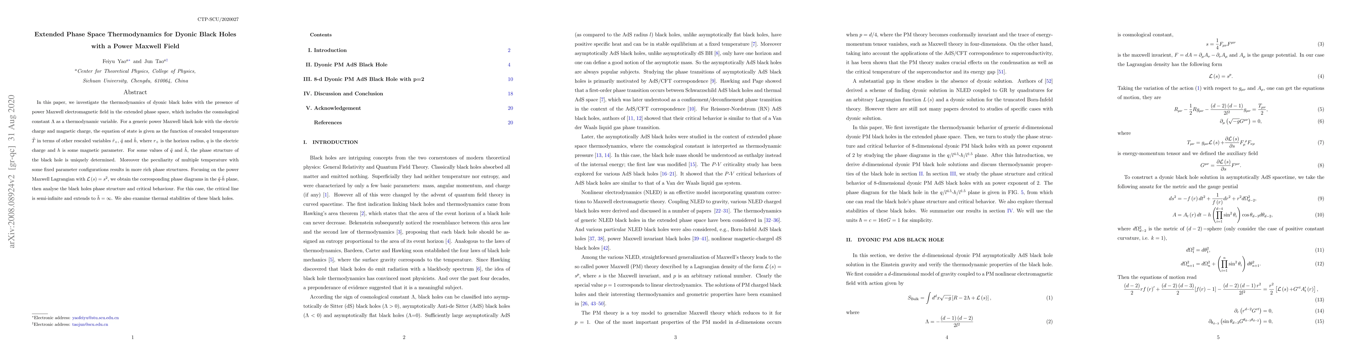 In this paper, we investigate the thermodynamics of dyonic black holes with the presence of power Maxwell electromagnetic field in the extended phase space, which includes the cosmological constant $\Lambda$ as a thermodynamic variable. For a generic power Maxwell black hole with the electric charge and magnetic charge, the equation of state is given as the function of rescaled temperature $\tilde{T}$ in terms of other rescaled variables $ \tilde{r}_{+}$, $\tilde{q}$ and $\tilde{h}$, where $r_{+}$ is the horizon radius, $q$ is the electric charge and $h$ is some magnetic parameter. For some values of $\tilde{q}$ and $\tilde{h}$, the phase structure of the black hole is uniquely determined. Moreover the peculiarity of multiple temperature with some fixed parameter configurations results in more rich phase structures. Focusing on the power Maxwell Lagrangian with $\mathcal{L} \left( s\right) =s^{2}$, we obtain the corresponding phase diagrams in the $ \tilde{q}$-$\tilde{h}$ plane, then analyse the black holes phase structure and critical behaviour. For this case, the critical line is semi-infinite and extends to $\tilde{h}=\infty$. We also examine thermal stabilities of these black holes.