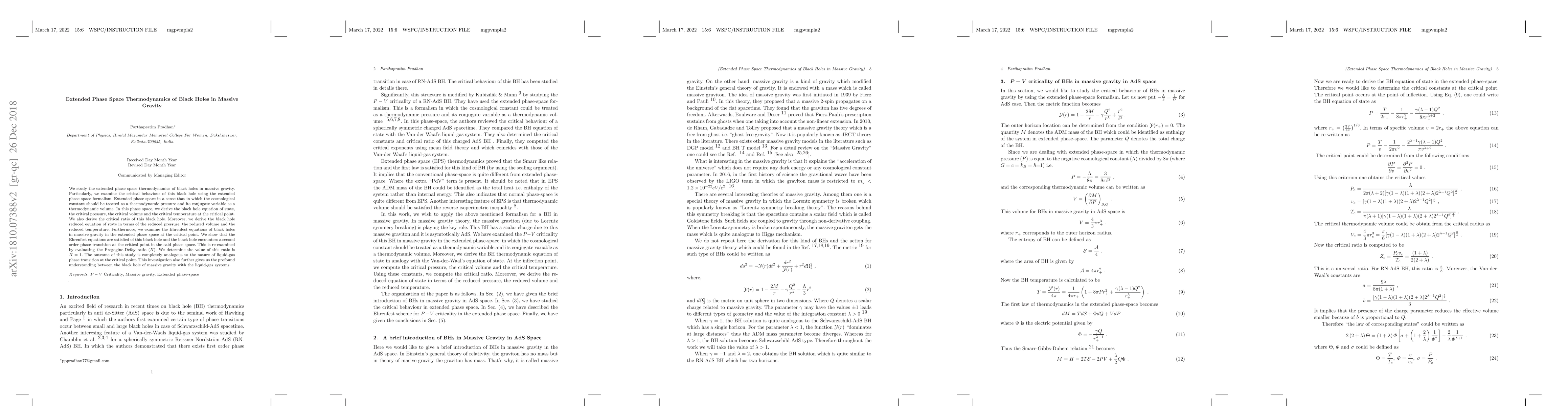 We study the extended phase space thermodynamics of black holes in massive gravity. Particularly, we examine the critical behaviour of this black hole using the extended phase space formalism. Extended phase space in a sense that in which the cosmological constant should be treated as a thermodynamic pressure and its conjugate variable as a thermodynamic volume. In this phase space, we derive the black hole equation of state, the critical pressure, the critical volume and the critical temperature at the critical point. We also derive the critical ratio of this black hole. Moreover, we derive the black hole reduced equation of state in terms of the reduced pressure, the reduced volume and the reduced temperature. Furthermore, we examine the Ehrenfest equations of black holes in massive gravity in the extended phase space at the critical point. We show that the Ehrenfest equations are satisfied of this black hole and the black hole encounters a second order phase transition at the critical point in the said phase space. This is re-examined by evaluating the Pregogine-Defay ratio~($\varPi$). We determine the value of this ratio is $\varPi=1$. The outcome of this study is completely analogous to the nature of liquid-gas phase transition at the critical point. This investigation also further gives us the profound understanding between the black hole of massive gravity with the liquid-gas system.