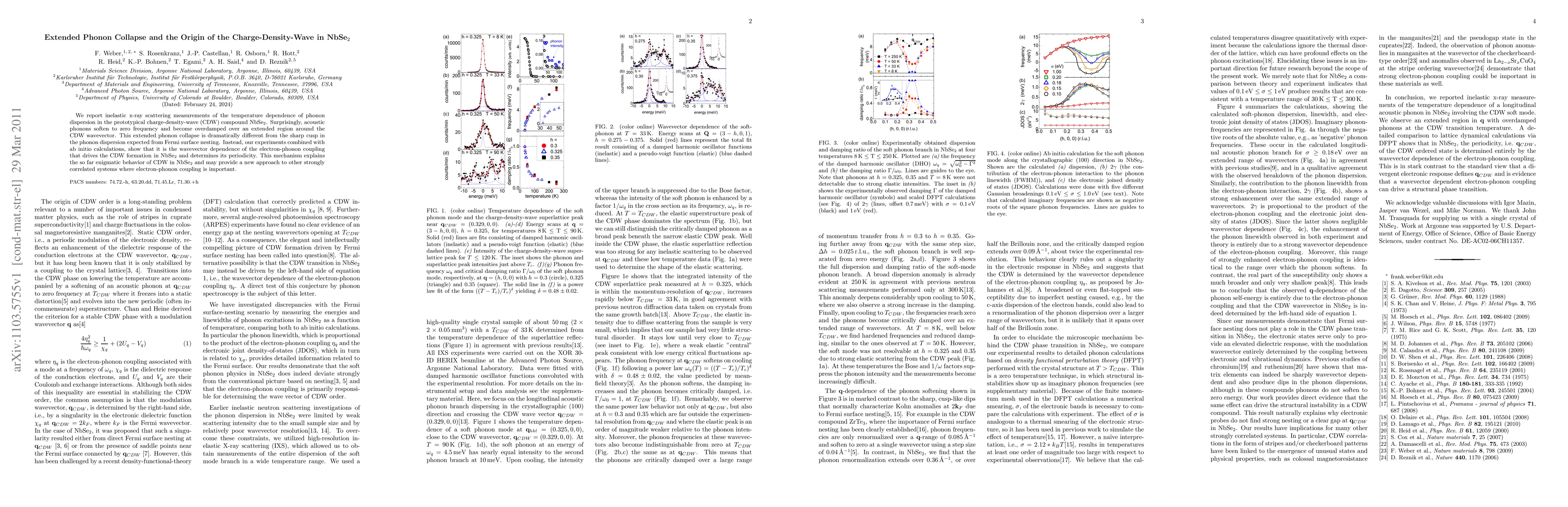 We report inelastic x-ray scattering measurements of the temperature dependence of phonon dispersion in the prototypical charge-density-wave (CDW) compound NbSe2. Surprisingly, acoustic phonons soften to zero frequency and become overdamped over an extended region around the CDW wavevector. This extended phonon collapse is dramatically different from the sharp cusp in the phonon dispersion expected from Fermi surface nesting. Instead, our experiments combined with ab initio calculations, show that it is the wavevector dependence of the electron-phonon coupling that drives the CDW formation in NbSe$_2$ and determines its periodicity. This mechanism explains the so far enigmatic behavior of CDW in NbSe$_2$ and may provide a new approach to other strongly correlated systems where electron-phonon coupling is important.