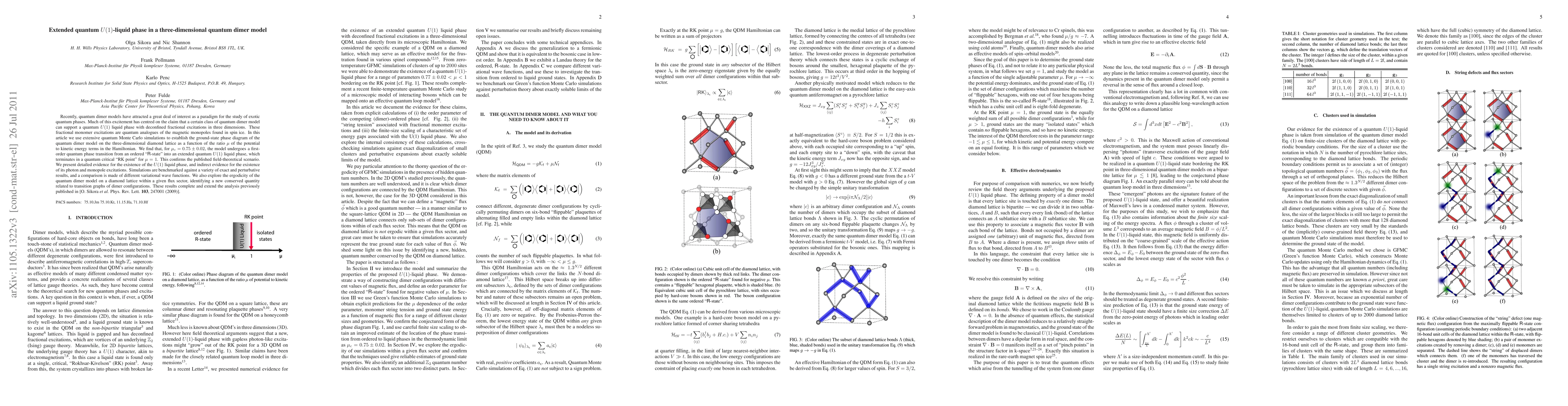 The study uses quantum Monte Carlo simulations to establish the ground-state phase diagram of a three-dimensional quantum dimer model on a diamond lattice, confirming the existence of an extended quantum U(1)-liquid phase transitioning at a critical ratio, and providing evidence for its photon and monopole excitations. The results extend prior theoretical predictions and benchmark computational methods against exact and perturbative results.
