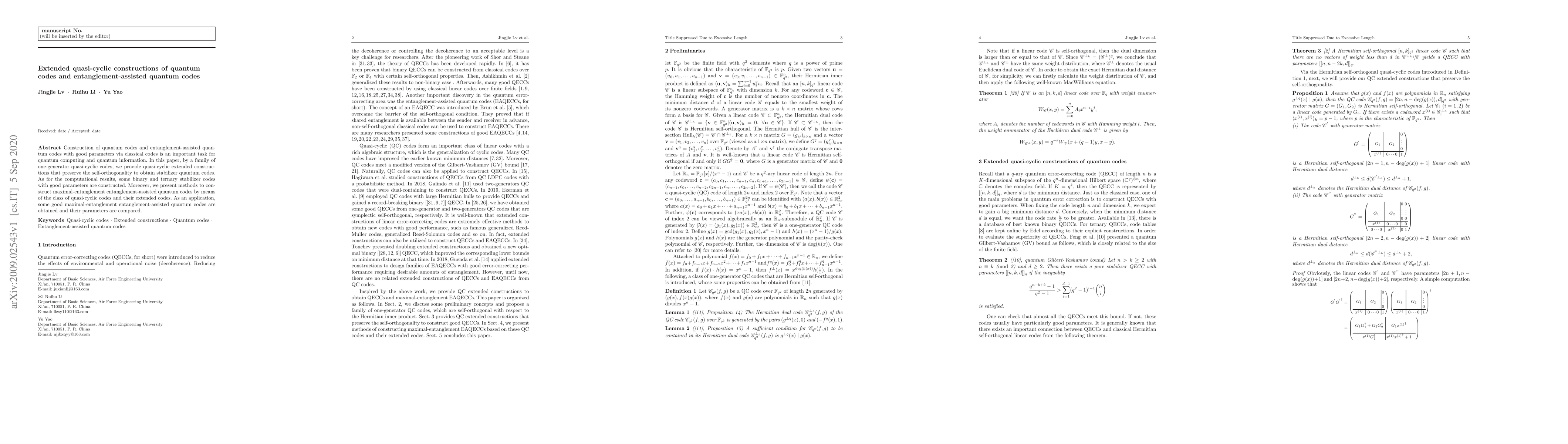 This paper introduces quasi-cyclic extended constructions to create stabilizer quantum codes that maintain self-orthogonality, presenting binary and ternary codes with favorable parameters. It also outlines methods to construct maximal-entanglement entanglement-assisted quantum codes using quasi-cyclic codes, demonstrating their effectiveness through specific examples.