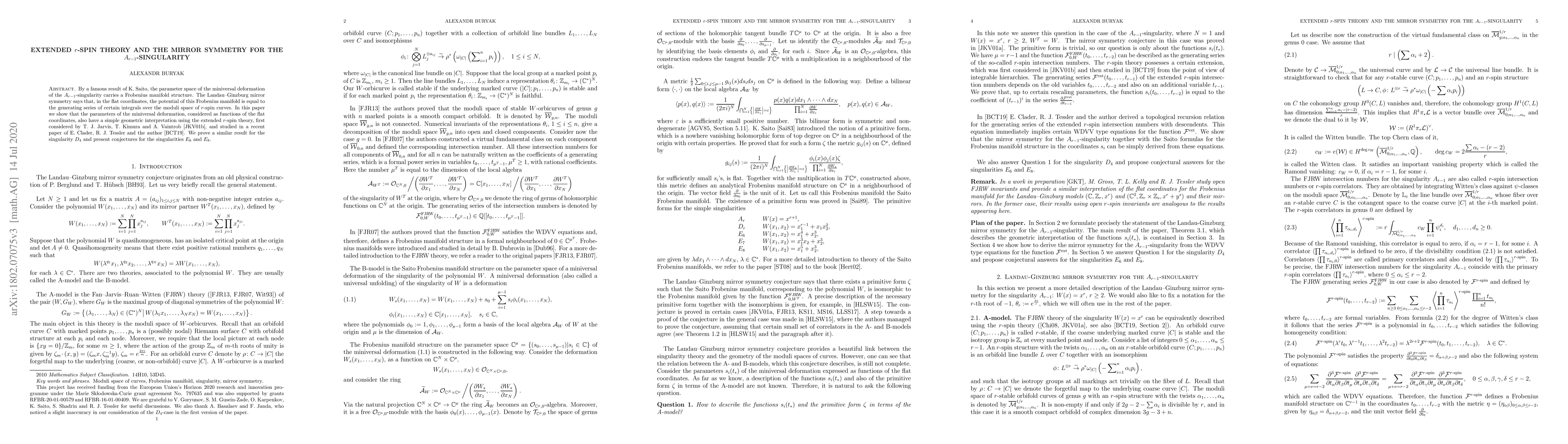 This paper extends the $r$-spin theory to interpret the parameters of the miniversal deformation of the $A_{r-1}$-singularity geometrically, aligning with the Landau-Ginzburg mirror symmetry. It also conjectures similar results for the $D_4$, $E_6$, and $E_8$ singularities.