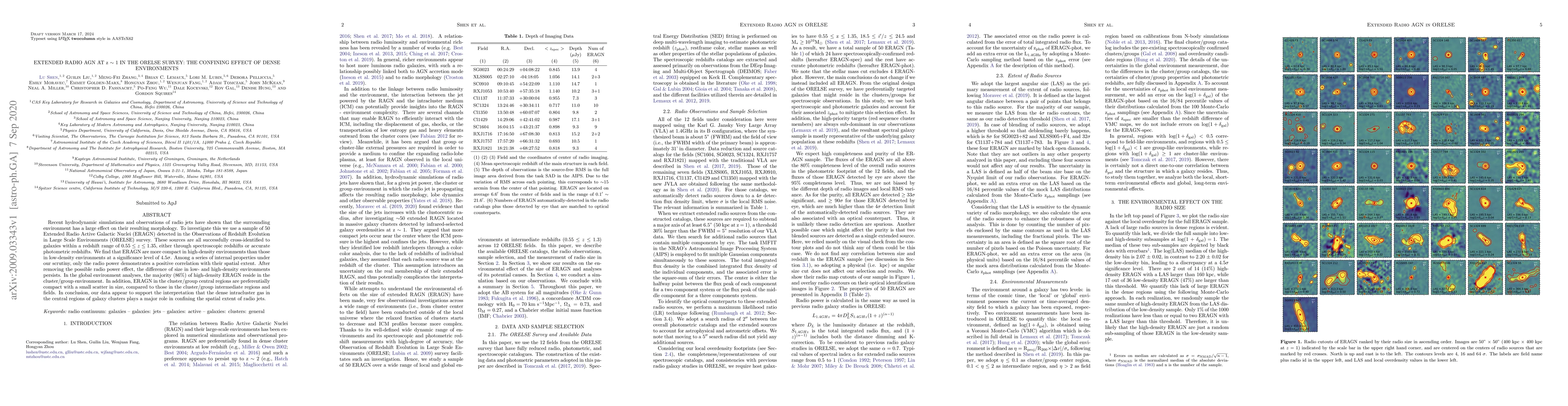 Recent hydrodynamic simulations and observations of radio jets have shown that the surrounding environment has a large effect on their resulting morphology. To investigate this we use a sample of 50 Extended Radio Active Galactic Nuclei (ERAGN) detected in the Observations of Redshift Evolution in Large Scale Environments (ORELSE) survey. These sources are all successfully cross-identified to galaxies within a redshift range of $0.55 \leq z \leq 1.35$, either through spectroscopic redshifts or accurate photometric redshifts. We find that ERAGN are more compact in high-density environments than those in low-density environments at a significance level of 4.5$\sigma$. Among a series of internal properties under our scrutiny, only the radio power demonstrates a positive correlation with their spatial extent. After removing the possible radio power effect, the difference of size in low- and high-density environments persists. In the global environment analyses, the majority (86\%) of high-density ERAGN reside in the cluster/group environment. In addition, ERAGN in the cluster/group central regions are preferentially compact with a small scatter in size, compared to those in the cluster/group intermediate regions and fields. In conclusion, our data appear to support the interpretation that the dense intracluster gas in the central regions of galaxy clusters plays a major role in confining the spatial extent of radio jets.