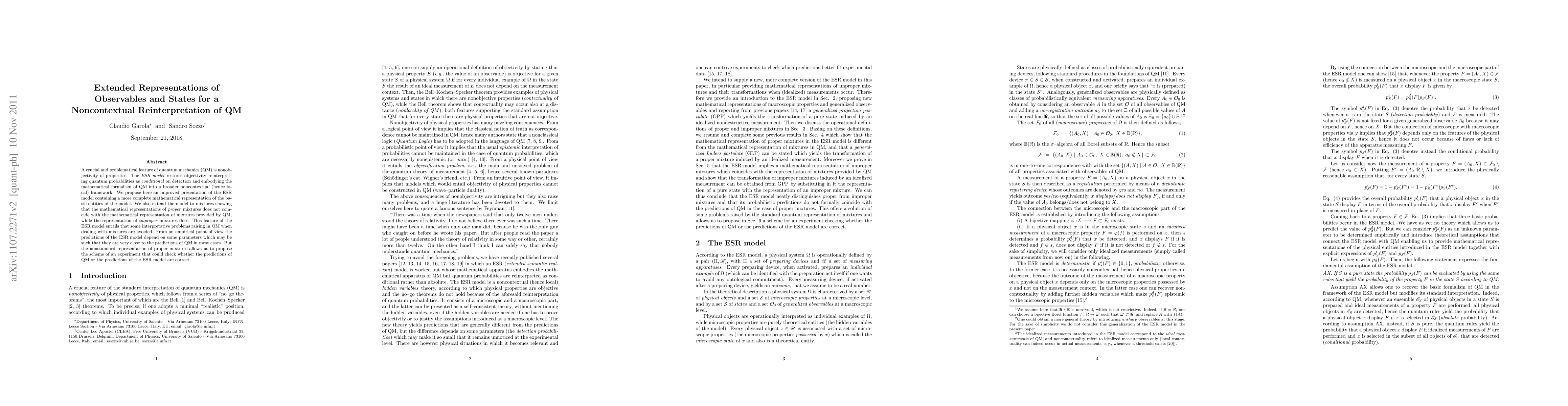 A crucial and problematical feature of quantum mechanics (QM) is nonobjectivity of properties. The ESR model restores objectivity reinterpreting quantum probabilities as conditional on detection and embodying the mathematical formalism of QM into a broader noncontextual (hence local) framework. We propose here an improved presentation of the ESR model containing a more complete mathematical representation of the basic entities of the model. We also extend the model to mixtures showing that the mathematical representations of proper mixtures does not coincide with the mathematical representation of mixtures provided by QM, while the representation of improper mixtures does. This feature of the ESR model entails that some interpretative problems raising in QM when dealing with mixtures are avoided. From an empirical point of view the predictions of the ESR model depend on some parameters which may be such that they are very close to the predictions of QM in most cases. But the nonstandard representation of proper mixtures allows us to propose the scheme of an experiment that could check whether the predictions of QM or the predictions of the ESR model are correct.