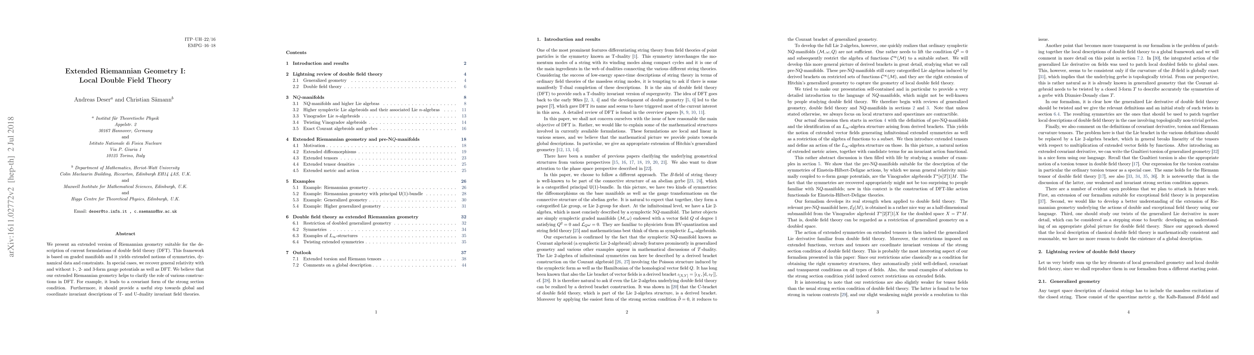 This paper introduces an extended Riemannian geometry framework based on graded manifolds for local double field theory, clarifying symmetries and constraints, and recovering general relativity with various gauge potentials. It aims to provide a covariant form of the strong section condition and a step towards global and duality invariant field theories.