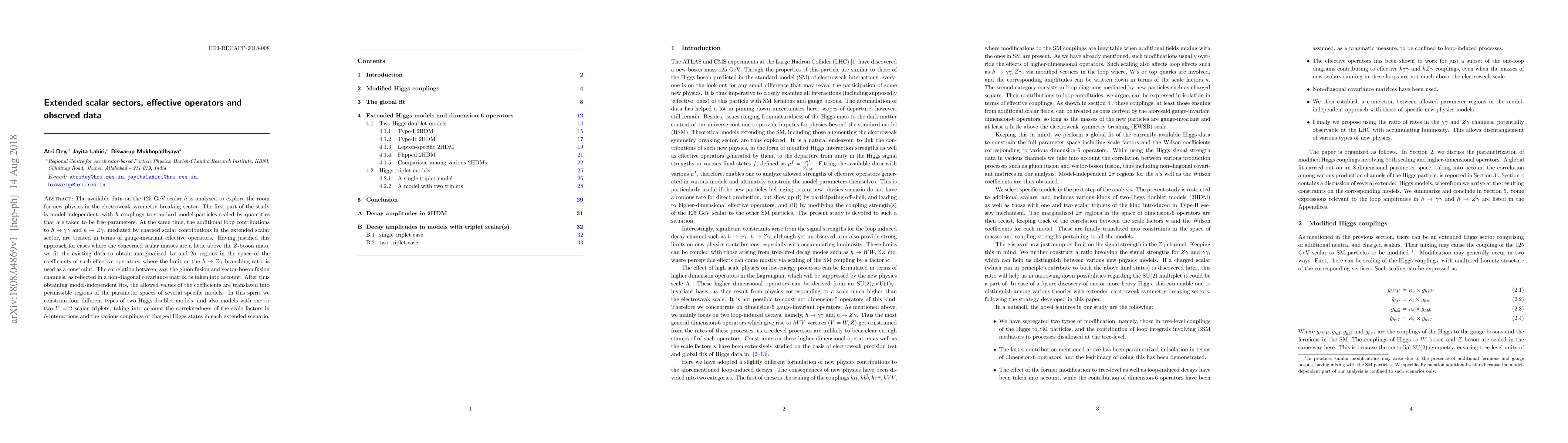 Researchers analyzed data on the 125 GeV scalar to explore new physics possibilities in the electroweak symmetry breaking sector, finding constraints on effective operators that could help explain observed data.
