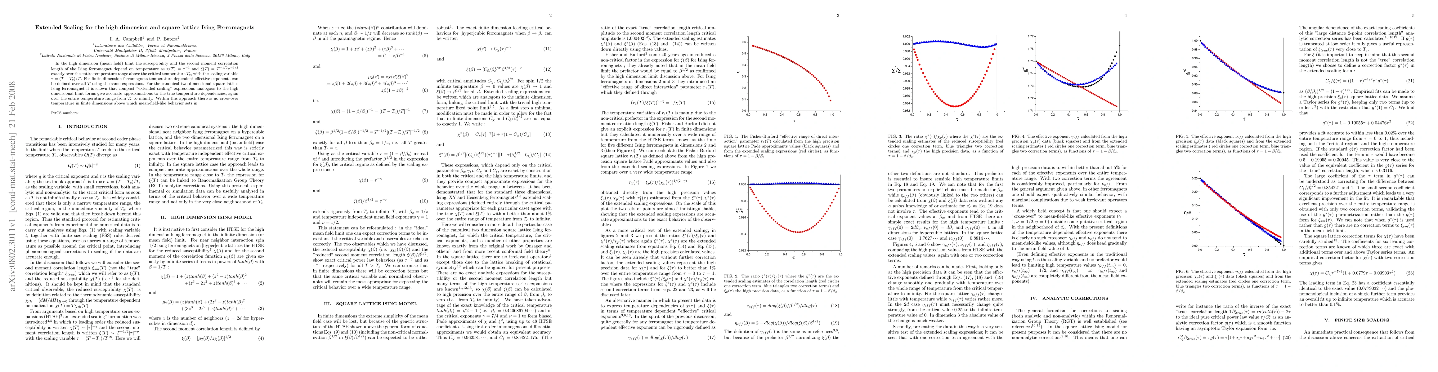 In the high dimension (mean field) limit the susceptibility and the second moment correlation length of the Ising ferromagnet depend on temperature as chi(T)=tau^{-1} and xi(T)=T^{-1/2}tau^{-1/2} exactly over the entire temperature range above the critical temperature T_c, with the scaling variable tau=(T-T_c)/T. For finite dimension ferromagnets temperature dependent effective exponents can be defined over all T using the same expressions. For the canonical two dimensional square lattice Ising ferromagnet it is shown that compact "extended scaling" expressions analogous to the high dimensional limit forms give accurate approximations to the true temperature dependencies, again over the entire temperature range from T_c to infinity. Within this approach there is no cross-over temperature in finite dimensions above which mean-field-like behavior sets in.