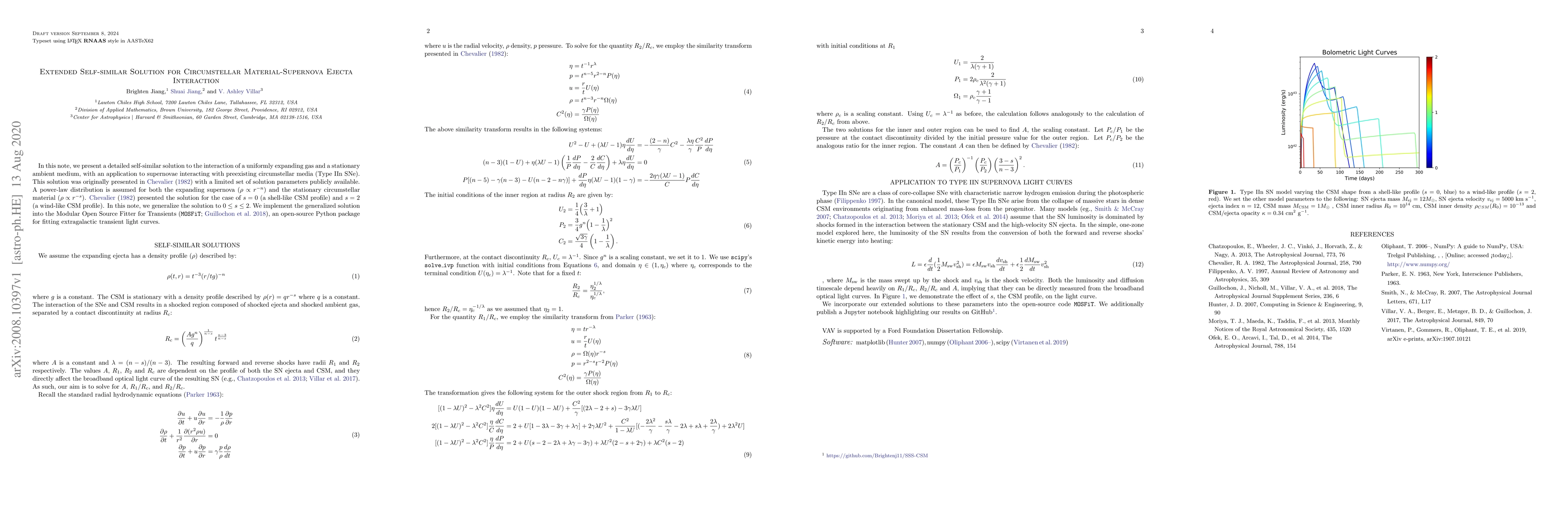 In this note, we present a detailed self-similar solution to the interaction of a uniformly expanding gas and a stationary ambient medium, with an application to supernovae interacting with preexisting circumstellar media (Type IIn SNe). We implement the generalized solution into the Modular Open Source Fitter for Transients (MOSFiT), an open-source Python package for fitting extragalactic transient light curves.
