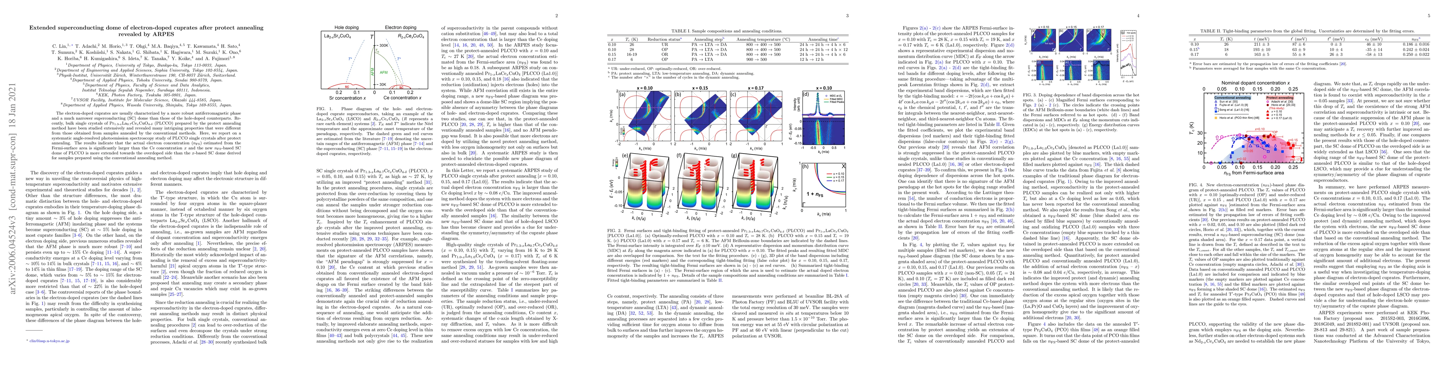 This paper reports on an ARPES study of electron-doped cuprates, specifically Pr1.3-xLa0.7CexCuO4-{\delta}, after protect annealing, revealing a more extended superconducting dome compared to conventionally annealed samples. The study finds that the Fermi-surface area indicates a larger electron concentration than the Ce concentration, leading to a broader superconducting region.