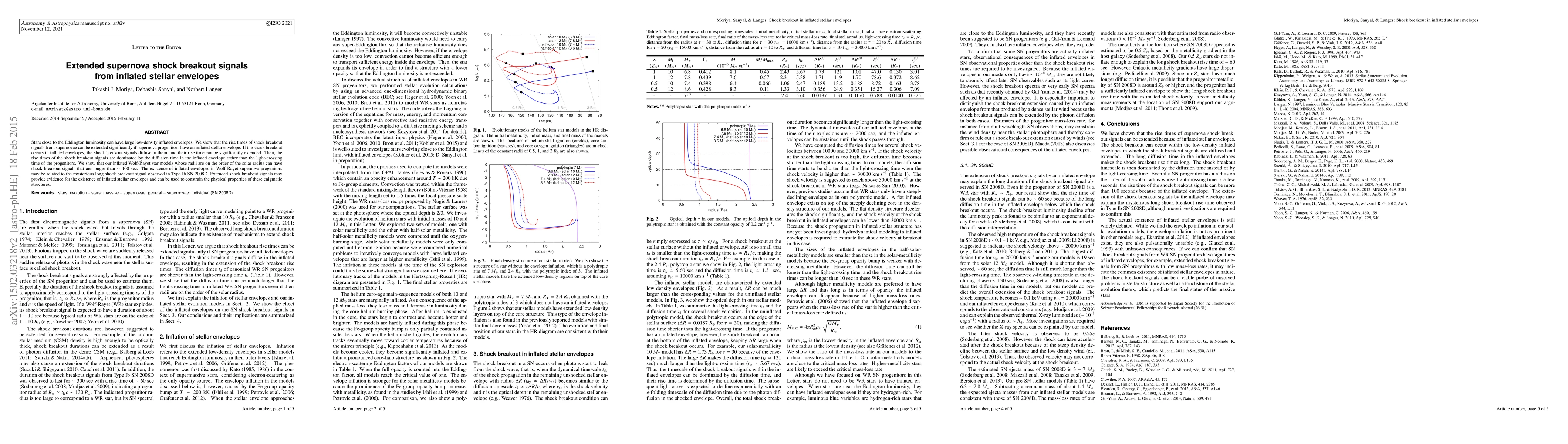 This paper investigates how inflated stellar envelopes in stars close to Eddington luminosity can extend the rise times of supernova shock breakout signals. It demonstrates that shock breakout signals in such inflated envelopes can be significantly prolonged due to diffusion, providing evidence for the existence of these enigmatic structures and potentially explaining long-duration signals like those observed in Type Ib SN 2008D.