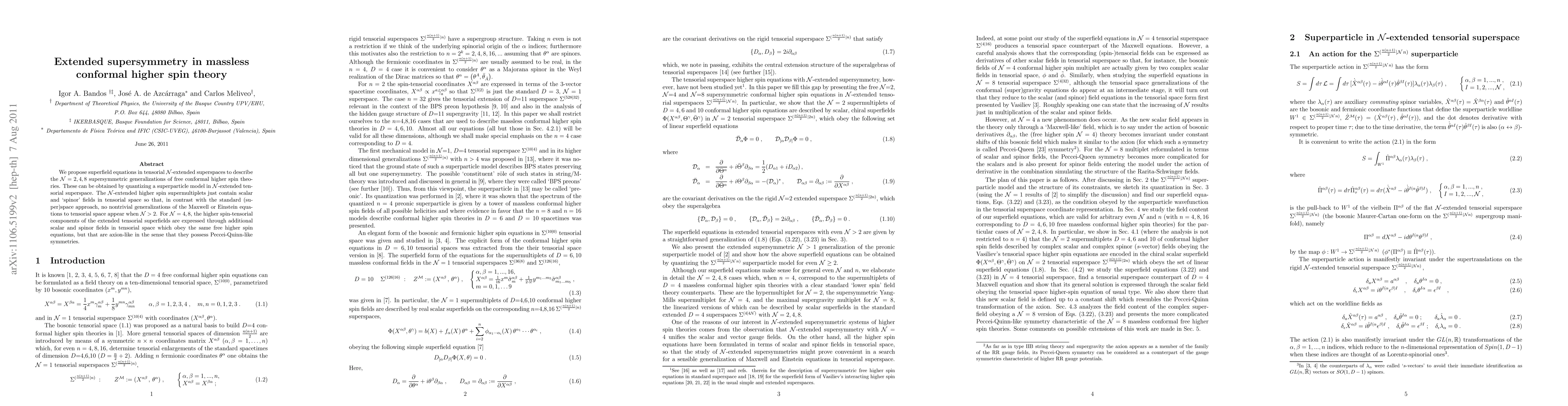 This paper proposes superfield equations in N-extended superspaces to describe supersymmetric generalizations of free conformal higher spin theories, showing that for N>2, no nontrivial generalizations of Maxwell or Einstein equations arise. For N=4,8, higher spin components are linked to axion-like fields with Peccei-Quinn-like symmetries.