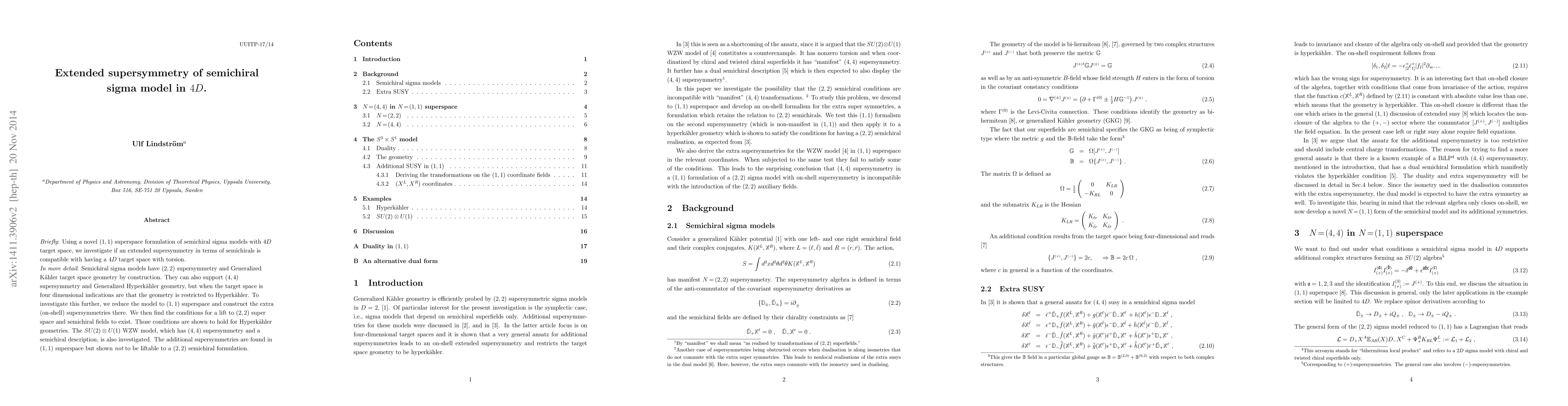 Briefly: Using a novel $(1,1)$ superspace formulation of semichiral sigma models with $4D$ target space, we investigate if an extended supersymmetry in terms of semichirals is compatible with having a $4D$ target space with torsion. In more detail: Semichiral sigma models have $(2,2)$ supersymmetry and Generalized K\"ahler target space geometry by construction. They can also support $(4,4)$ supersymmetry and Generalized Hyperk\"ahler geometry, but when the target space is four dimensional indications are that the geometry is restricted to Hyperk\"ahler. To investigate this further, we reduce the model to $(1,1)$ superspace and construct the extra (on-shell) supersymmetries there. We then find the conditions for a lift to $(2,2)$ super space and semichiral fields to exist. Those conditions are shown to hold for Hyperk\"ahler geometries. The $SU(2)\otimes U(1)$ WZW model, which has $(4,4)$ supersymmetry and a semichiral description, is also investigated. The additional supersymmetries are found in $(1,1)$ superspace but shown {\em not} to be liftable to a $(2,2)$ semichiral formulation.